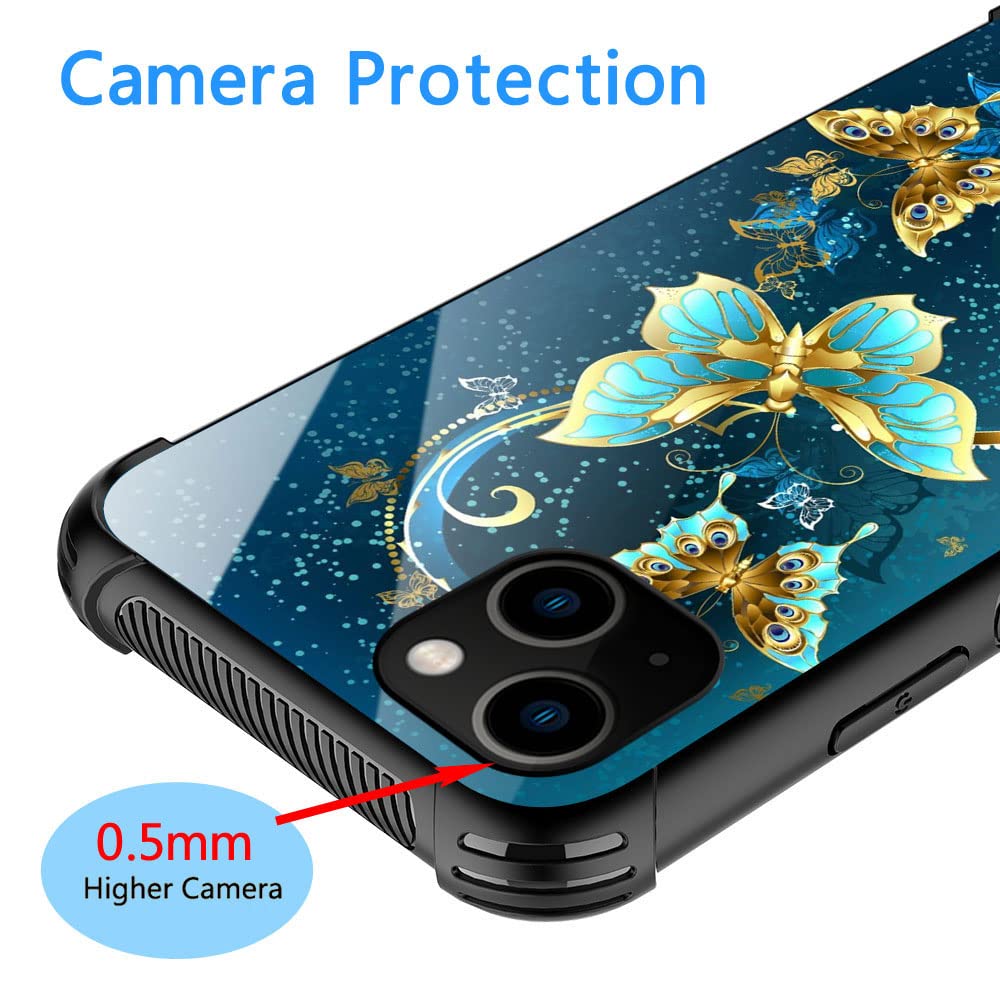 Iphone 13 Case, Emerald Butterfly Iphone 13 Cases For Women Girls, Pattern Design Shockproof Anti Scratch Organic Glass Case For