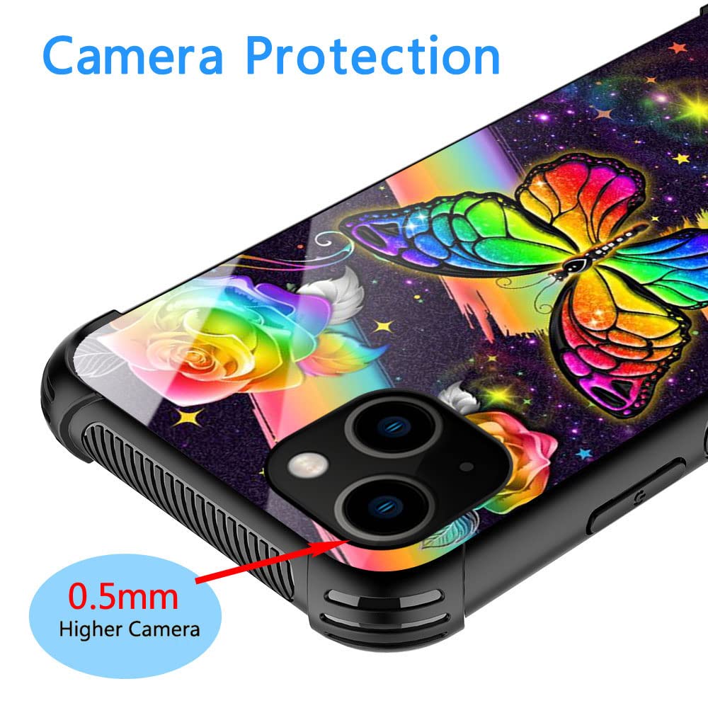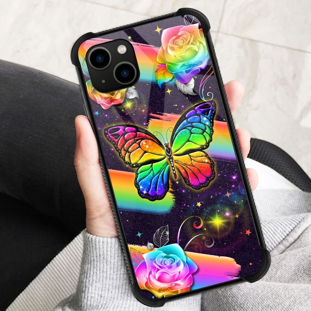 Iphone 13 Case, Rainbow Butterfly Iphone 13 Cases For Women Girls, Pattern Design Shockproof Anti Scratch Organic Glass Case For