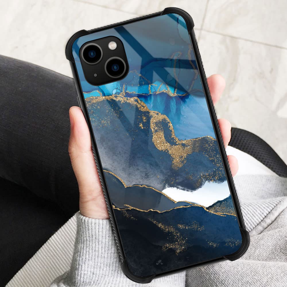 Iphone 13 Pro Max Case, Dark Blue Glitter Gold Powder Iphone 13 Pro Max Cases For Women Girls, Pattern Design Shockproof Anti Sc