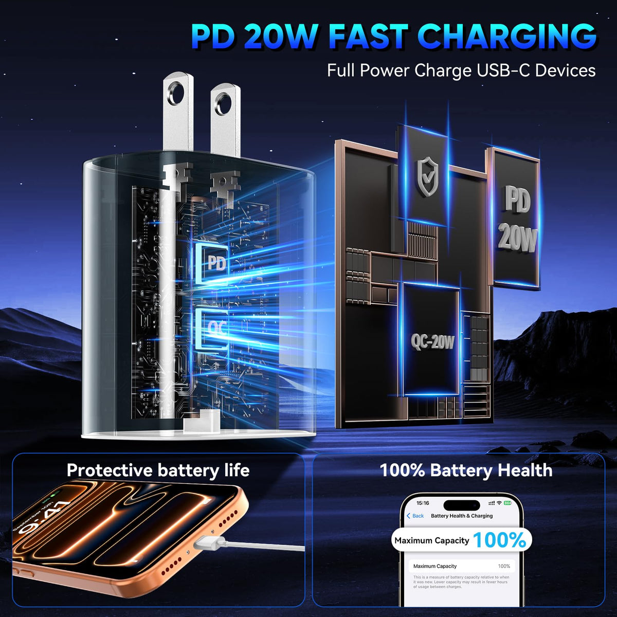20W Iphone 15 Charger Fast Charging Ipad Fast Charger Setspecification: Input: 100-240V, 5060Hz 1A Max Output: 5V=3Av 9V=222A12V=167A Power: 20W Length: 10Ft Extra Long Safety Assurance: Etl, Fcc, Ce, Rohs Certificatedsunsron Usb-C Charger Block For Ipad Adopts The New Pd 30 Charging Technology It Can Monitor Temperature, Voltage In Real Time, Protect Your Devices Against Overheating, Overvoltage, Overcurrent, Short-Circuiting When You Are Chargingensure The Charging Process Is Stable, Safe, And Efficient 10Ft Long Ipad Charger Cord: With The Intelligent Chip Type-C To C Cable Can Charge Ipad Pro 129 With 3A Charging Speed Friendly Reversible Design, Support 480Mbps Data Syncing Between Your Devices And Laptop 6Ft Long Length Can Give You More Space To Move While Charging Compatibility List: Iphone 15 Charger Fast Charging Only Compatible With Iphone 15 15 Plus 15 Pro 15 Pro Max Ipad Pro 129 Inch(2022 6Th Gen) Ipad Pro 129 Inch(2021 5Th Gen) Ipad Pro 129 Inch(2020 4Th Gen) Ipad Pro 129 Inch(2018 3Rd Gen) Ipad Pro 11 Inch(2022 4Rd Gen) Ipad Pro 11 Inch(2021 3Rd Gen) Ipad Pro 11 Inch(2020 2Nd Gen) Ipad Pro 11 Inch(2018 1St Gen) Ipad Air 5(2022 5Th Gen) Ipad Air 4(2020 4Th Gen) Ipad Mini 6(2021 6Th Gen) Ipad 10 (2022 10Th Gen) Galaxy S21 And Google Pixel 2, Nexus 6P And More