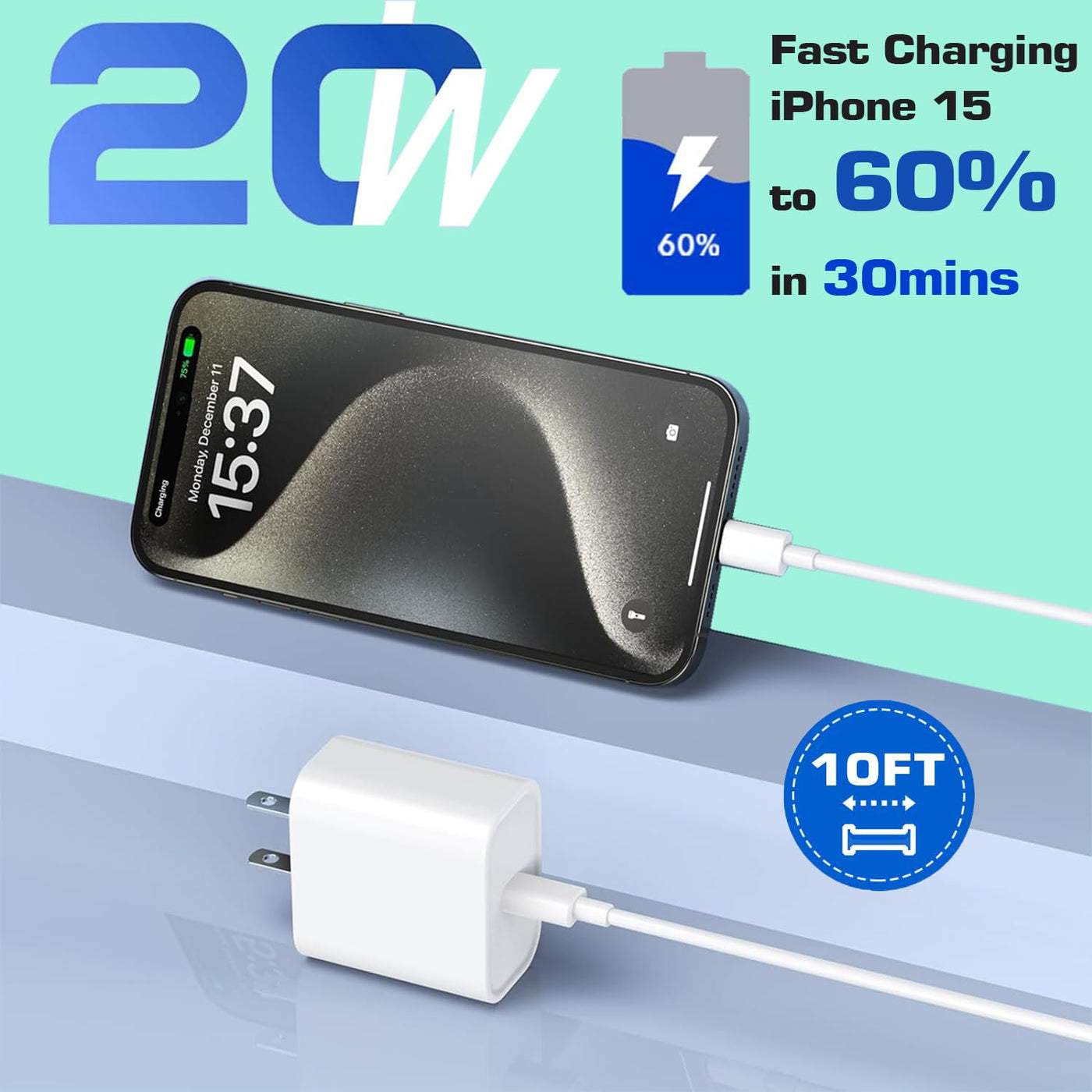 3Pack 20W Pd 3.0 Usb C Block Plug Iphone 15 Pro Max Charger &Amp; 3Pack 60W 10Ft 10Foot Long Usb C To Usb C Cable3 Pack 10Ft Extra Long Usb-C Cablethe 3 Pack 10Ft New Iphone 15 Pro Charger Cord Is Ideal For Various Occasions, With 20W Usb C Charger Block Can Charge Your Devices In Bedroom, Kitchen,Office Or At The Backseat Of Your Car.3.0X 20W Faster Charging20W Pd Usb C Iphone 15 Fast Charger With 10Ft Type C To C Cord, Full Charge Your Iphone 15 Pro Max From 0% To 60% In Just 30 Mins, Helps You Work Efficiently.Built In High-Tech Chipthe Updated Smart Chip In The Ul-Certified 20W Usb C Charger For Iphone 15 Pro Max Protects Your Devices From Overcurrent, Over-Voltage, Short-Circuit, And Overheating, Ensuring Fast Charging Efficiency And Security.Fast Charging &Amp; Data Transmissionfast Charging Max 3A And Stable Data Transfer Up To 480 Mb/S, This Iphone 15 Chargers Usb C Cord Can Perfectly Compatible With The Newest Iphone 15 Series.Universal Compatibilityfor Iphone- Iphone 15/15 Plus/15 Pro/15 Pro Maxfor Ipad- Ipad Pro M4 11 Inch (2024)- Ipad Pro M4 13 Inch (2024)- Ipad Air M2 11 Inch (2024)- Ipad Air M2 13 Inch (2024)- Ipad Pro 12.9 Inch 6Th/5Th/4Th/3Th (2022/2021/2020/2018)- Ipad Pro 11 Inch 4Th/3Th/2Th/1Th (2022/2021/2020/2018)- Ipad Air 5Th Generation 2022- Ipad Air 4Th Generation 2020- Ipad Mini 6Th Generation 2021- Ipad 10Th Generation 10.9 Inch 2022What You Get3 * 20W Pd 3.0 Iphone 15 Charger Usb C Charger Block3 * 10Ft Usb C To Usb C Cable Fast Charging Data Sync Cable