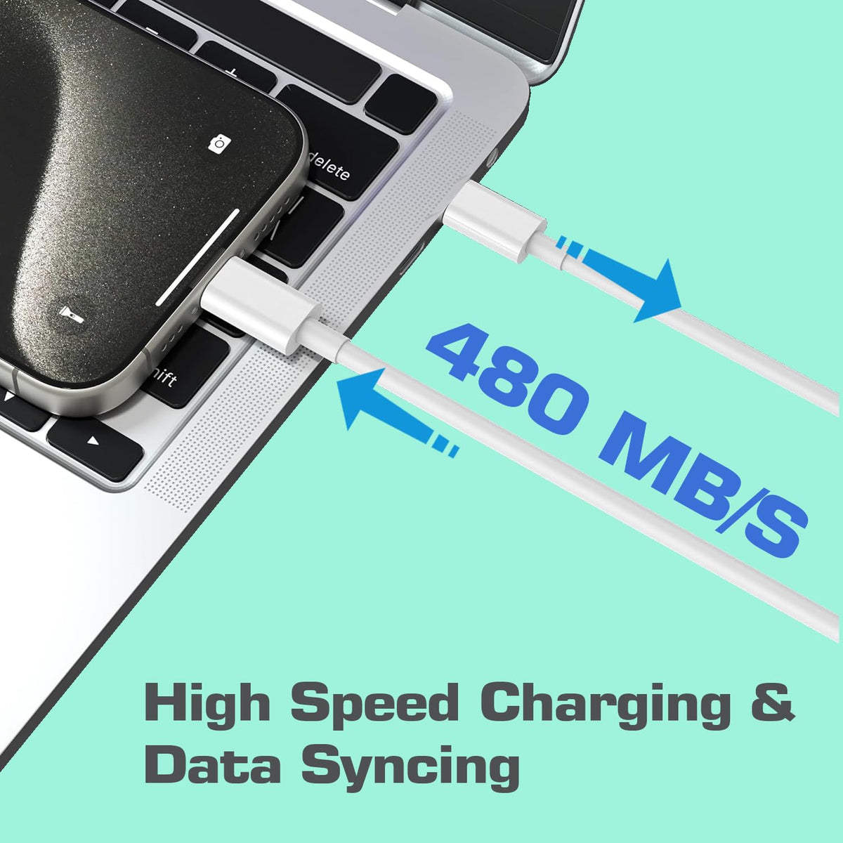 Q: Can I use this charger for data transfer as well?A: Yes, the iPhone 15 Charger comes with a 10FT USB C to USB C cable that supports stable data transfer speeds of up to 480 Mb/s while charging, making it convenient for both charging and syncing your devices.