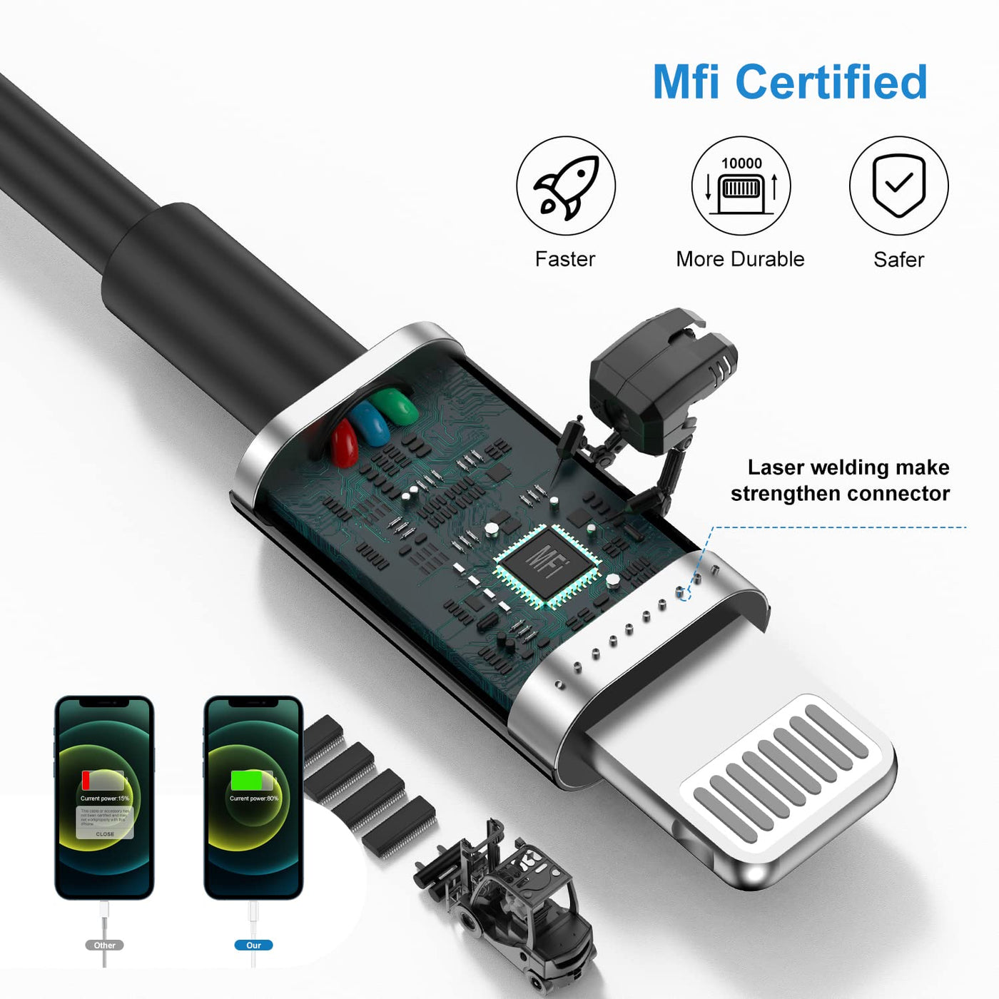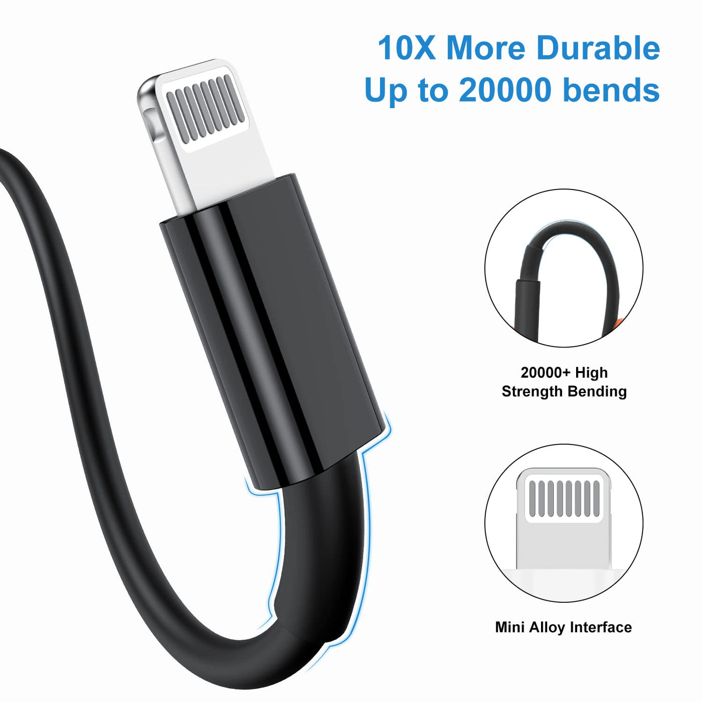 ??Mfi Certified?:Built With Original Chip Promise No Warning Message Pops Up, Ensures That Your Lightning Devices Are Loaded And Charge Safely And Faster At Maximum Speed. | ??Perfect 10 Feet Length?: 3 Pack 10 Feet Iphone Charger Cable Length. This Iphone Charger Cable Allows You To Conveniently Charge Your Device In The Bedroom, Sofa, Office, And Travel, They Are Easy For Portable In Your Bag When You Are Travel Or Take A Stroll With Your Powerbank | ??Fast Charging?Iphone Charger Cable Are Made Of High Purity Copper Core And Smart Intelligent Chip With Overcharge Protection, Stable Current Protection, Automatic Switching And Battery Protection, Which Can Support Up To 2.4A Fast Charging. | ??More Durable?Reinforced Stress Points With A 20000+ Bend Lifespan Make Usb A To Lightning Cord Many Times More Durable Than Other Cables Else On The Market. The Iphone Charger Is Easy To Sort Out, Not To Knot Or Tangle. | ??Excellent Compatibility? : Compatibility With Iphone 14 Pro Max/ 14 Pro/ 14/Iphone 13 Pro Max/ 13 Pro/ 13 /12 Pro Max/ 12 Pro/ 12 / 11 Pro Max/ 11 Pro/ 11 / Xs Max / Xs / Xr / X / 8 Plus / 8 / 7 Plus / 7 / 6S Plus / 6S / 6 Plus / 6 / 5S / 5C / 5 / Se /Air / Air 2 / Mini / Mini 2 / Mini 4 / Ipod Touch / Ipod Nano 7Th Gen Etc.