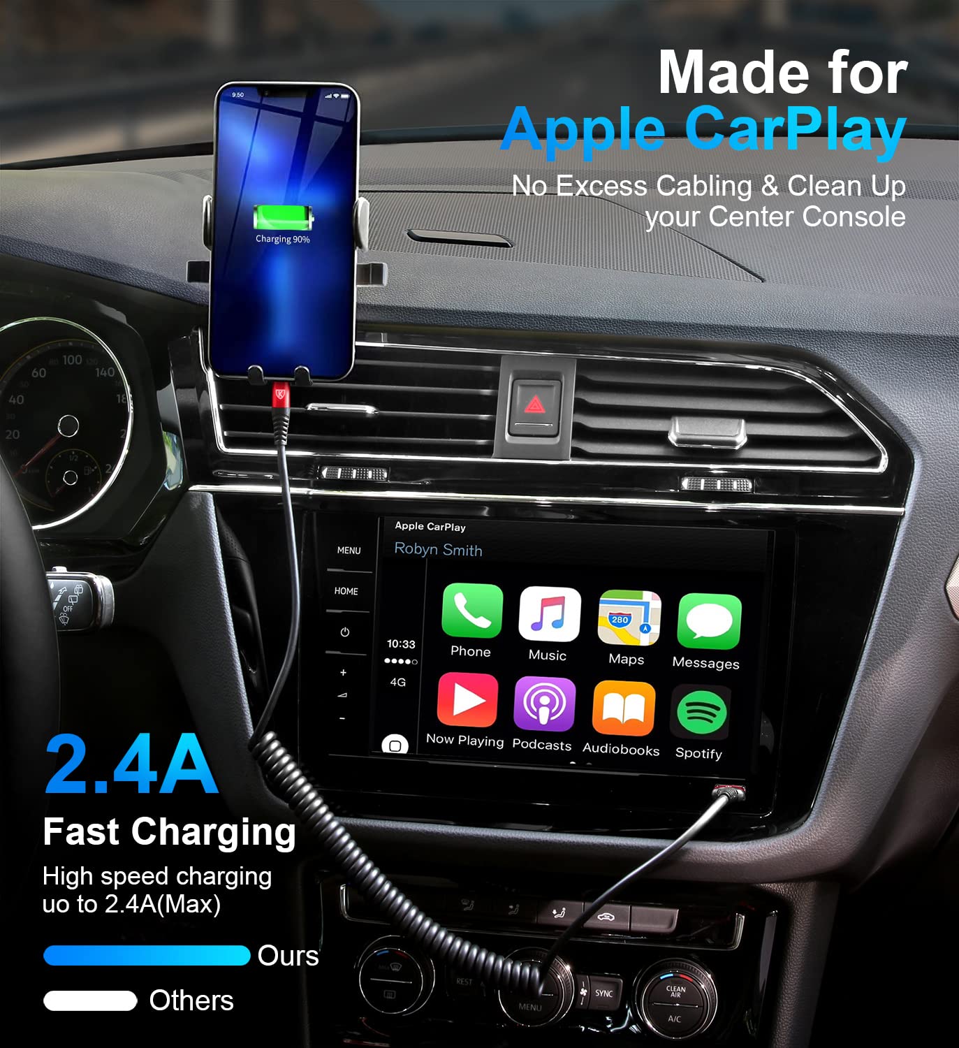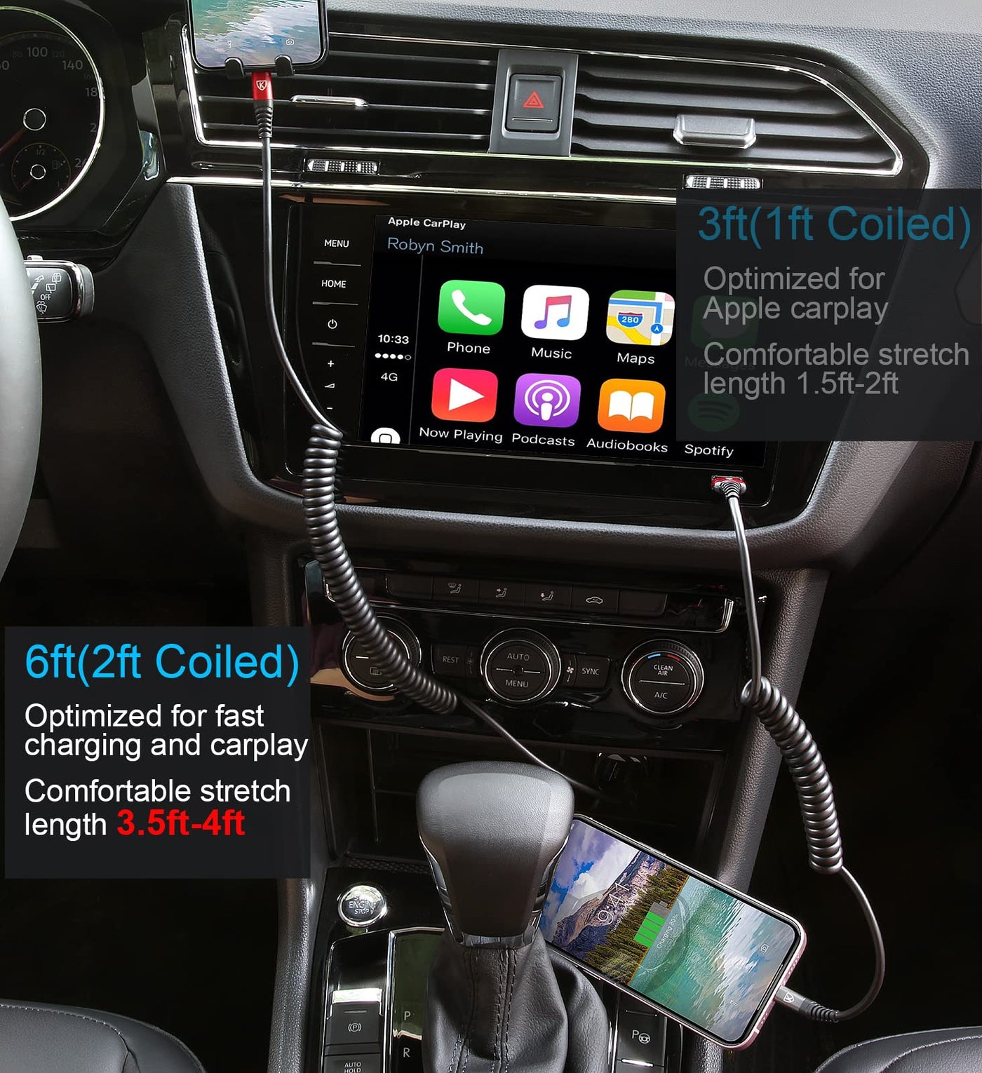 Coiled Lightning Cable 2 Pack 6 Feet Lightning Cord, Iphone Charger Cable 6Ft For Car