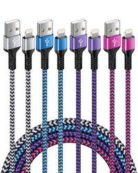 Fast Charging And Sync Iphone Cable Charging Speed Faster And Safer, Data Transmission Speeds Up To 480Mbps, Creating Convenient Life For You. Durability And Safety Iphone Cable Is Made Of Durable Aluminum And Nylon Braided Wire Makes The Cable More Durable Than The Standard Cables, With Built-In High Purity Copper Wire To Protect The Cable Charging. Specifications Color: White, Blue, Pink, Purple, Material: Nylon Braided Length: 6Ft Output: Usb A To Lighting Port Usb Output Voltage: 2.4A Package Include: 4 Lightning Braided Colorful Cords Guarantee: 12 Month Warranty Compatibility ---Compatible With Iphone 13/13 Max/13 Mini/13 Pro Max, ---Compatible With Iphone 12/12 Mini/12 Pro/12 Pro Max/11//11 Pro/11 Pro Max, ---Compatible With Iphone Xs Max/Xs/Xr/X/Se 2/8 Plus/8/7 Plus/7/6S/6 Plus/ 6/5S, ---Compatible With Pad Pro 10.5''/Pro 9.7''/,Pad Mini(2019)/Mini 3/Mini 2/Air/Air(2019), ---Compatible With Pod Touch 7Th, Pod 6Th, Pod 5Th, Pod 4Th Gen, ---Compatible With Pod Nano 7Th, Pod Nano 6Th And Other Ios Versions.