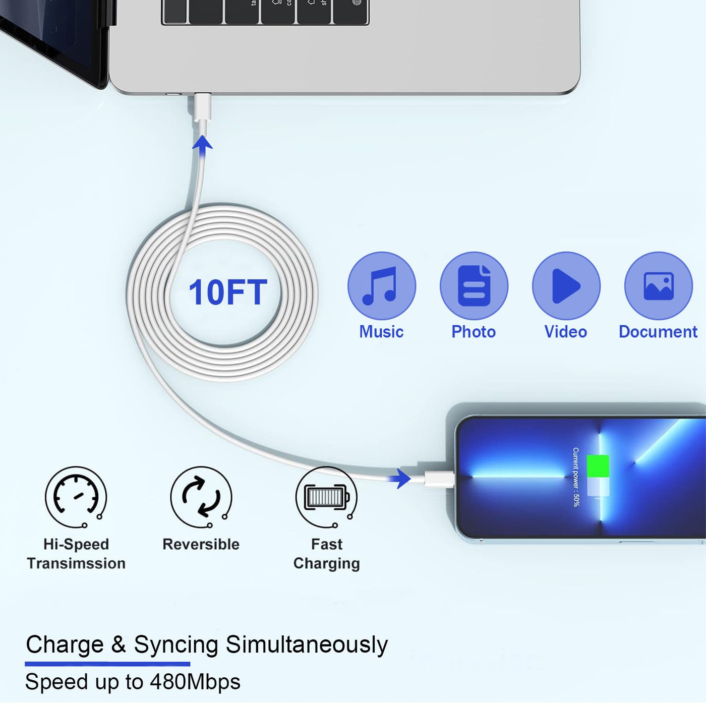 - 10FT MFi Certified Lightning Cable: The long design provides convenience and comfort, ensuring you can charge your devices from a distance while maintaining 100% compatibility.