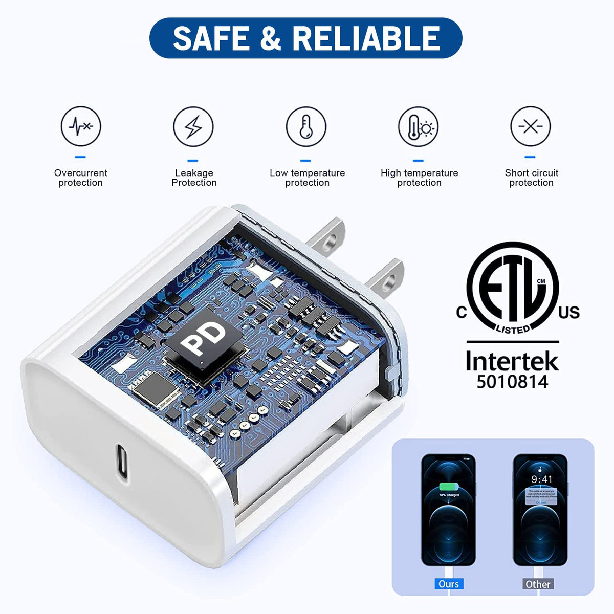 ?2-Pack) 10Ft Lightning Fast Charging Data Sync Cord With (2-Pack) Usb Wall Charger For Efficient Lifestyleproduct Features?- Premium Fire Proof Shell- Multi-Protect Safety System- Premium Grade Circuitry- Durable And Tangle-Free Design- 2*10Ft Length Long Iphone Cord- 2*Usb C Iphone Fast Chargerapplicable For Phone Chargers Iphone:Apple Iphone 14, 14 Pro, 14 Pro Max, 14 Plusapple Iphone 13, 13 Pro, 13 Pro Max, 13 Miniapple Iphone Se?1-3 Generations?Apple Iphone 12, 12 Mini, 12 Pro, 12 Pro Maxapple Iphone 11, 11 Pro, 11 Pro Maxapple Iphone X, Xr, Xs, Xs Max, Se 2020Apple Iphone 8, 8 Plusapple Iphone 7, 7 Plusapple Iphone 6, 6 Plus, 6S, 6S Plusapple Iphone 5, 5C, 5S, ...Apple Certified Lightning Cable:Built-In Original Mfi Certified Chip Ensures 100% Compatibility With Your Iphone/Ipad/Ipod.Safe Protection For You And Your Family:This Wall Charger Comes With Over-Current Protection,Over-Voltage Protection,Over-Heat Protection, Short-Circuit Protection And Over-Charge Protection.It Will Stop Charging When Your Iphone Capacity Is 100% Full, Will Not Do Harm To Your Devices.Product Details:Output:9V/2.0Aconnector Type: Usb Type C To Lightningmax Watts: 18Wcurrent: 12V/1.5Afast Charging Support: Yeswhat You Get:2 X 10Ft Usb C To Lightning Cables2 X Usb C Travel Plug Iphone Wall Charger