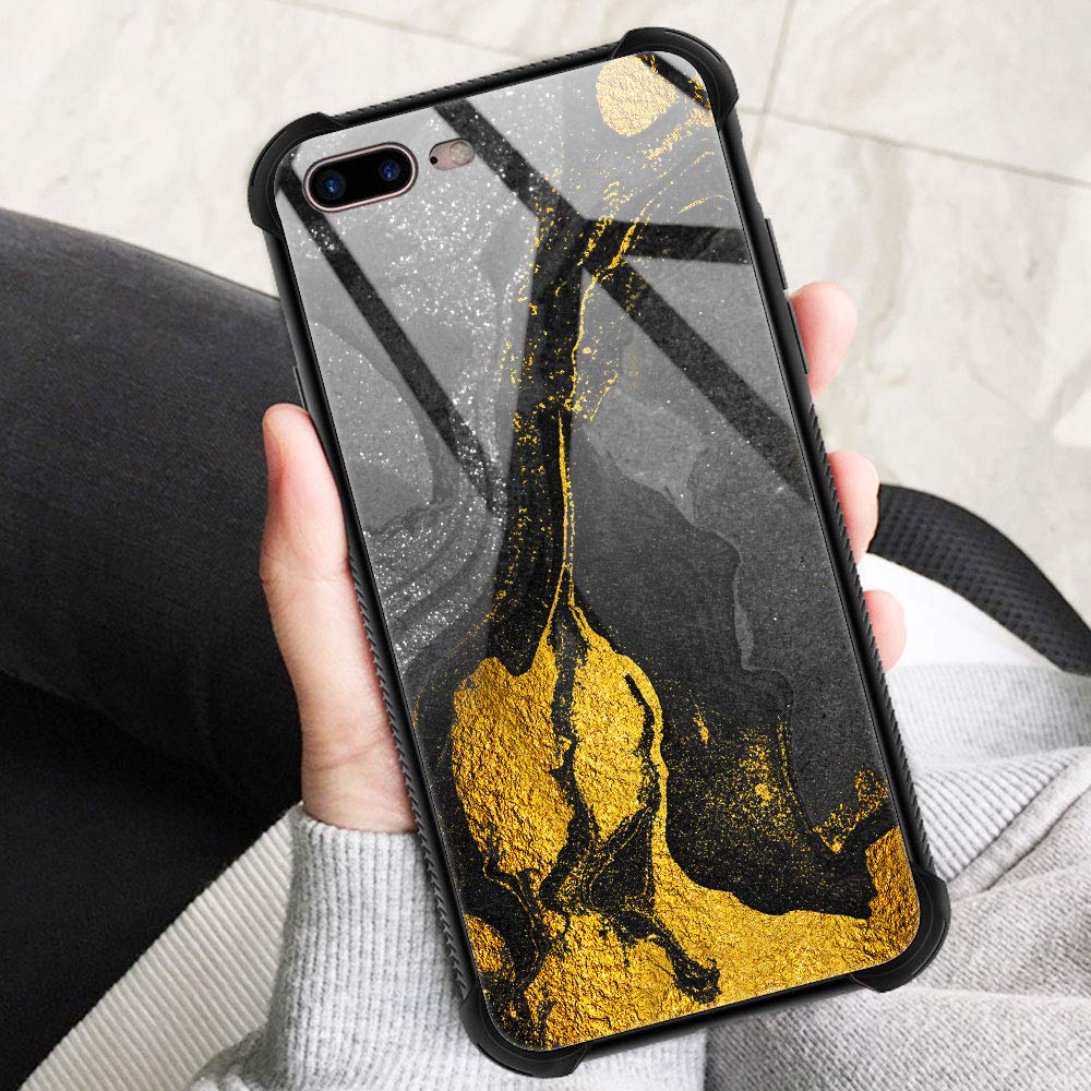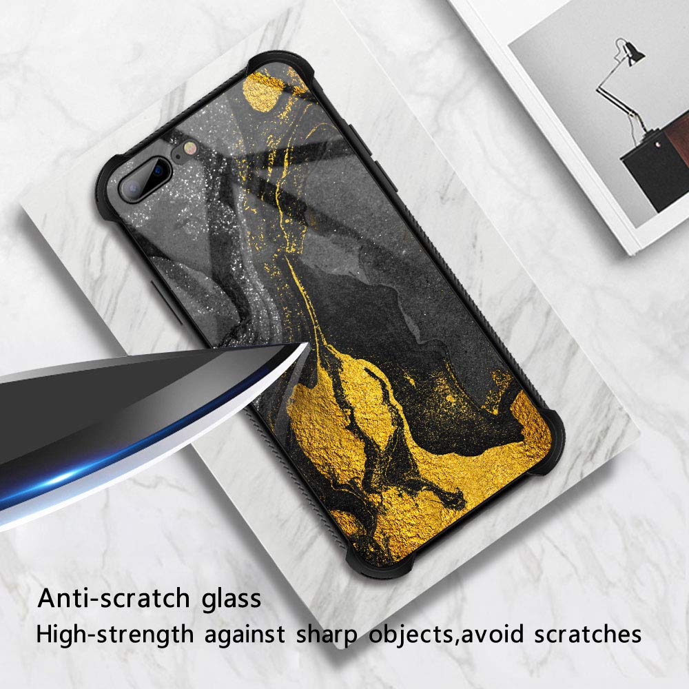 Iphone Se 2022/Se 2020 Case,Tempered Glass Iphone 8 Case For Boys Men,Black Golden Marble Iphone 7 Cases Shockproof Anti Scratch