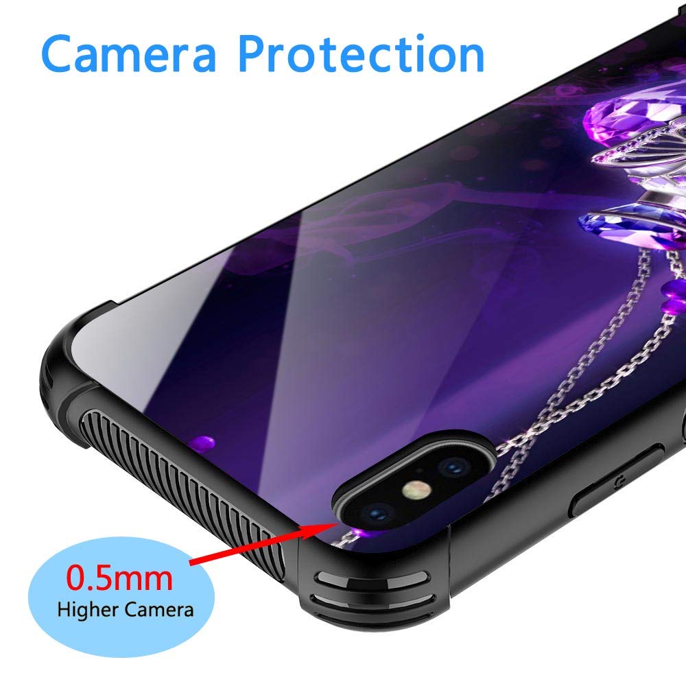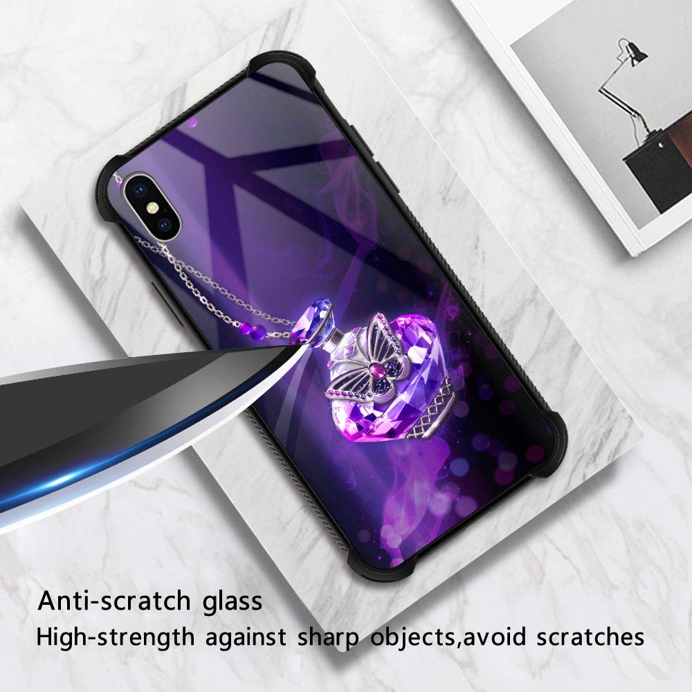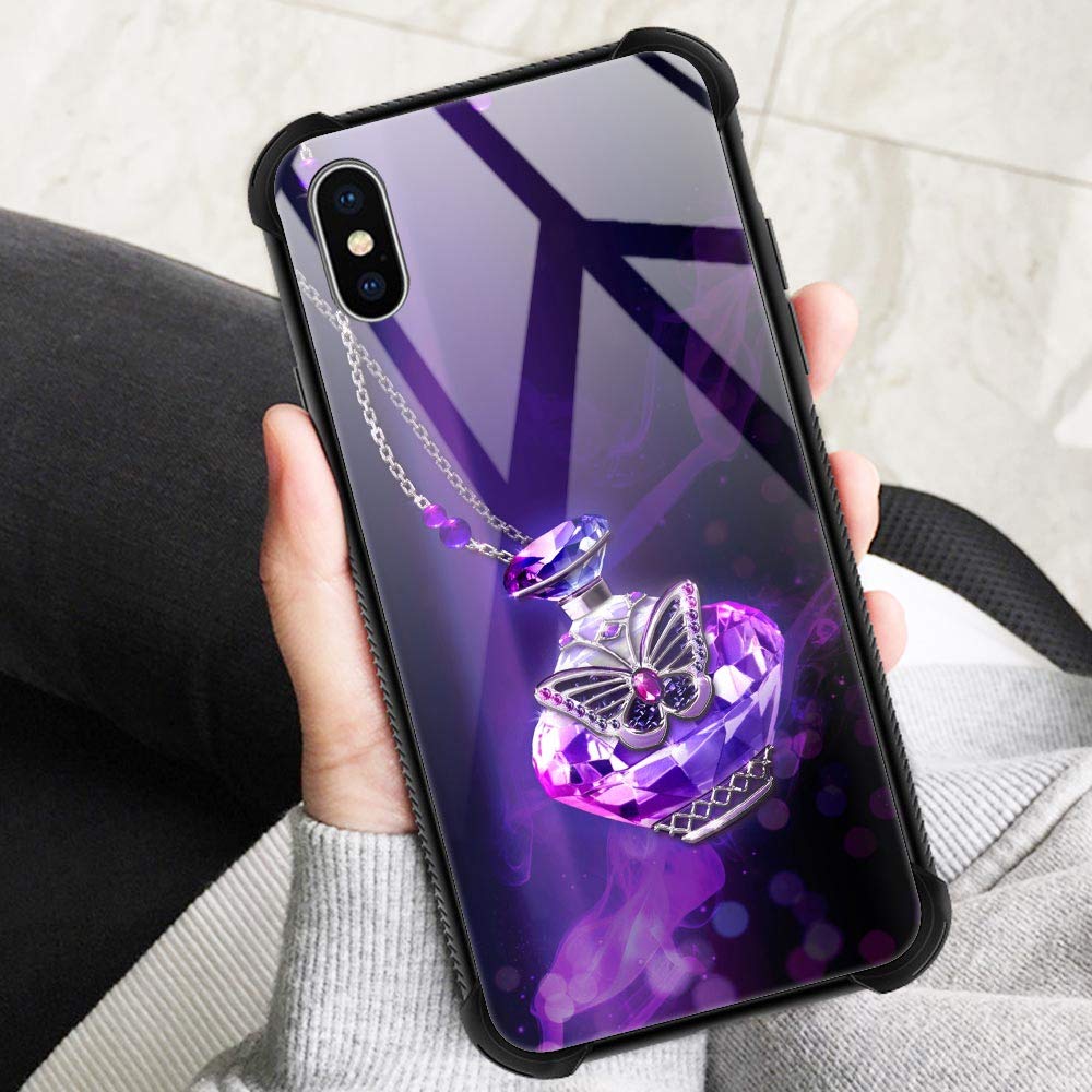 Iphone Xr Case,9H Tempered Glass Iphone Xr Cases For Girls Women,Fashion Purple Diamond Butterfly Pattern Shockproof Anti Scratc