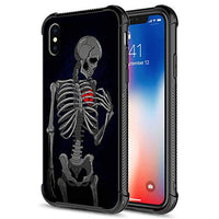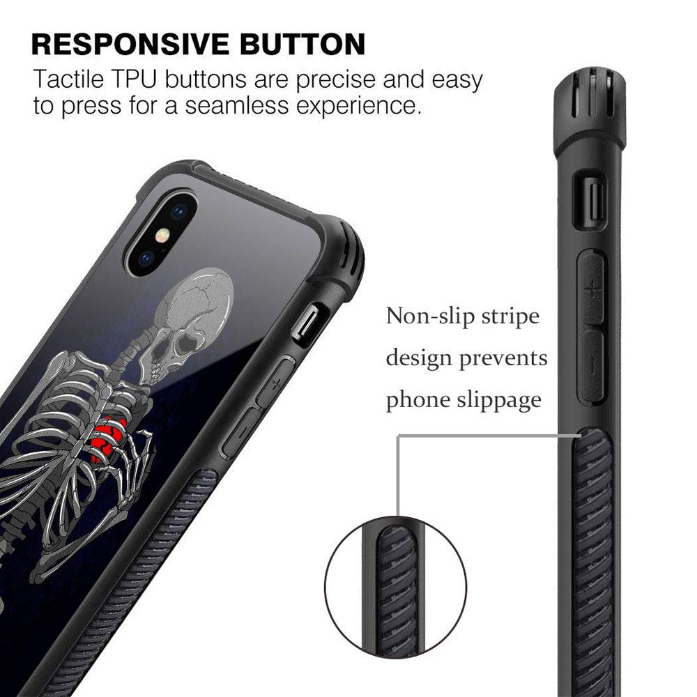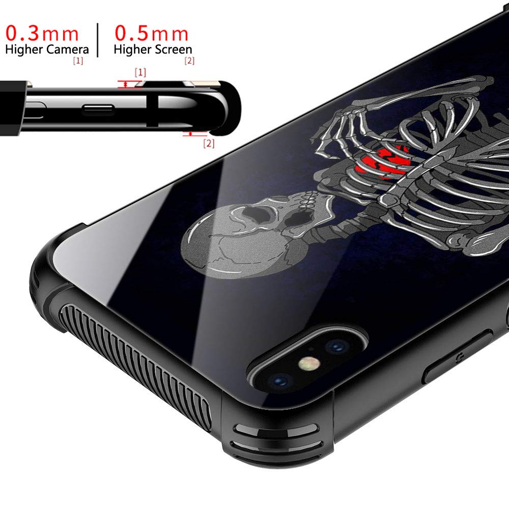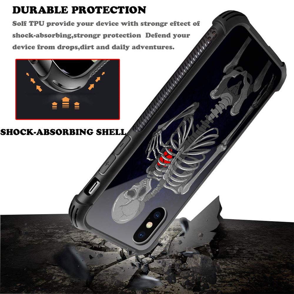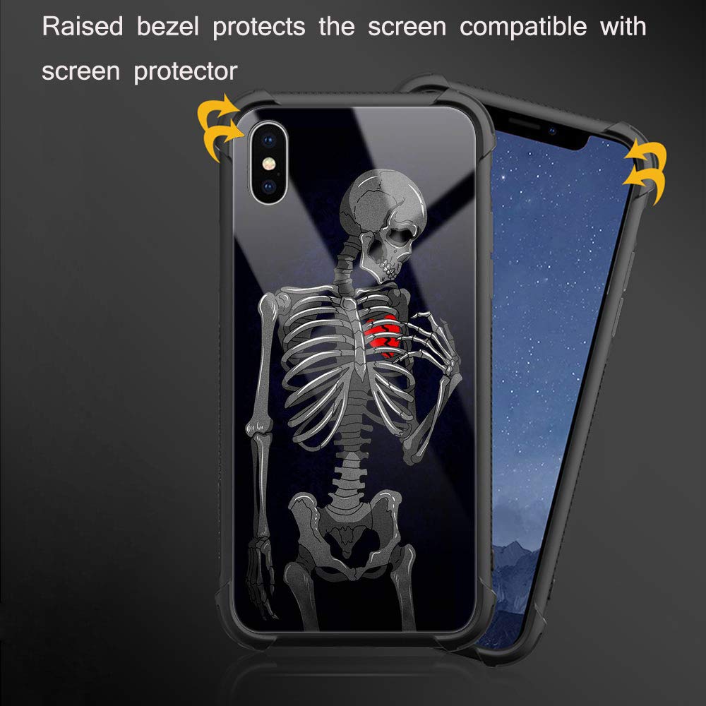 Iphone Xr Case, Brake Heart Skeleton Bj5Iphone Xr Cases, Tempered Glass Back+Soft Silicone Tpu Shock Protective Case For Apple I