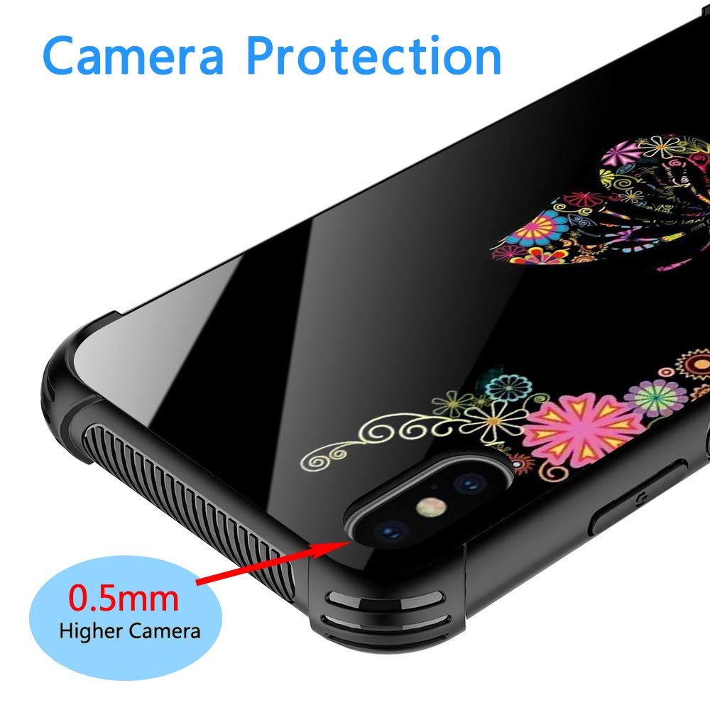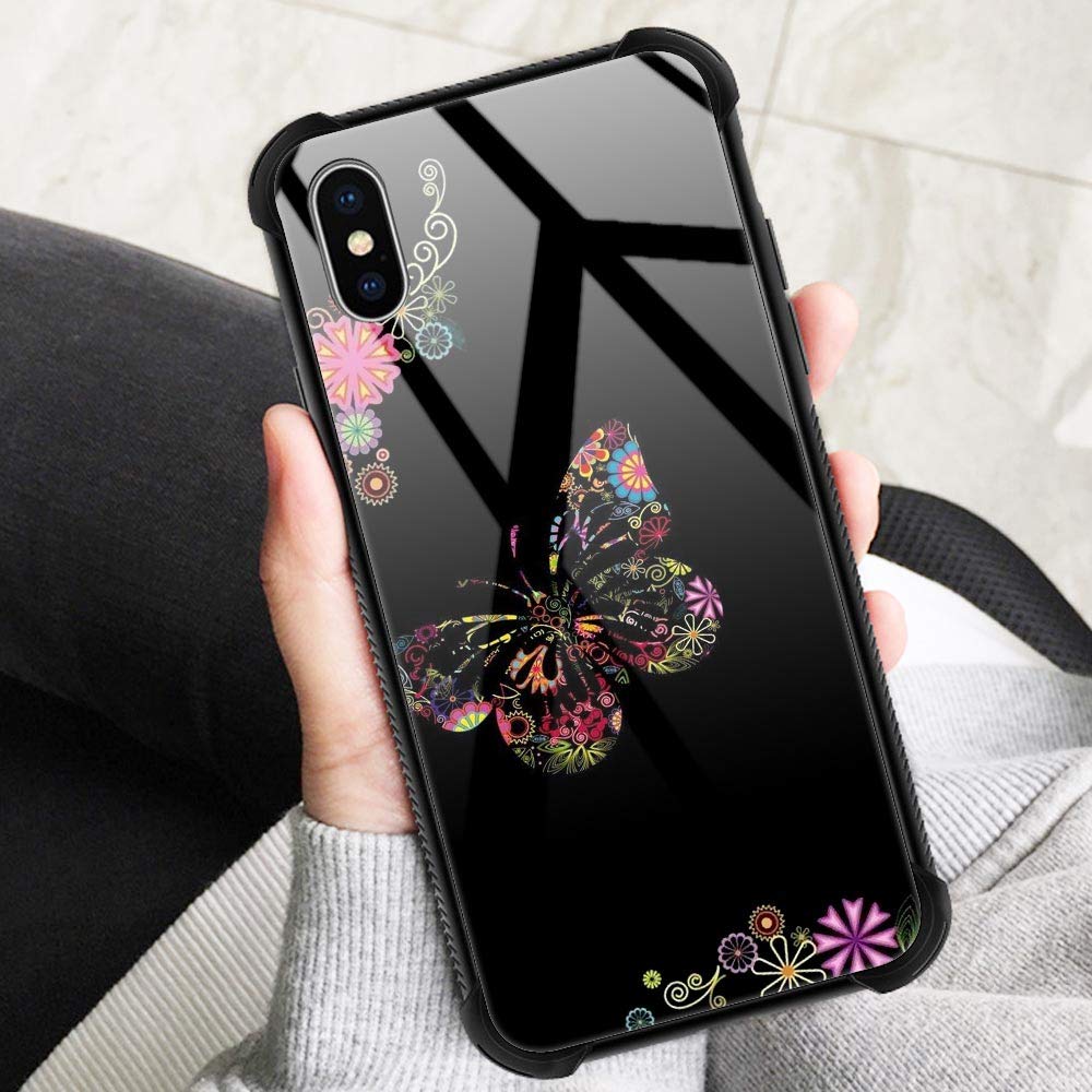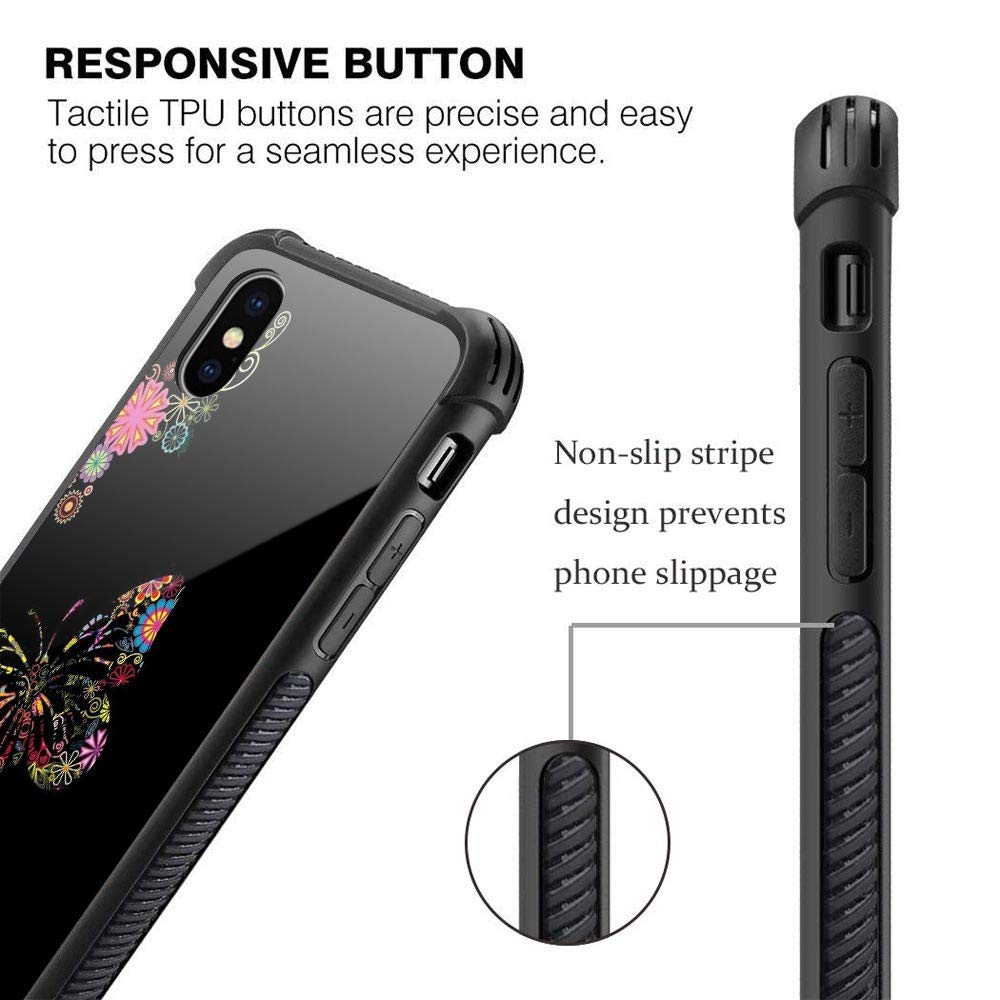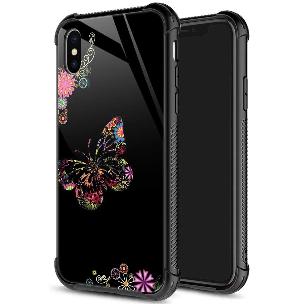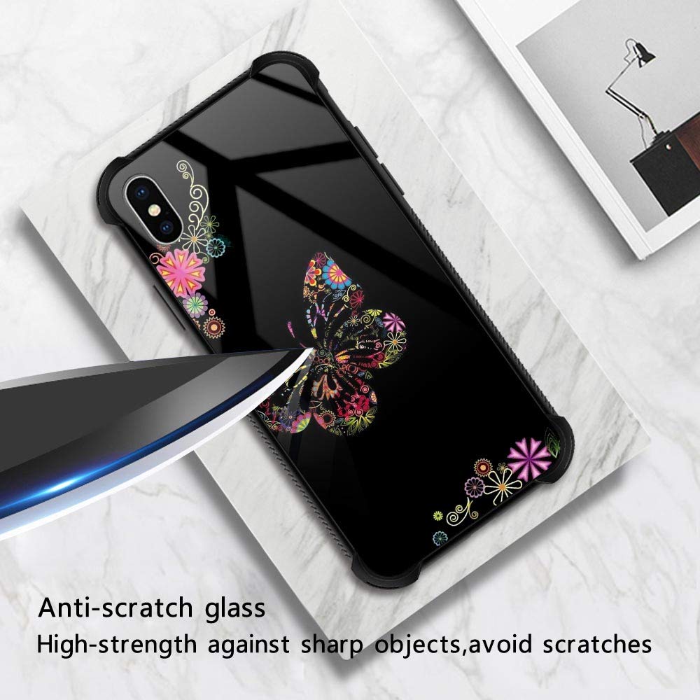 Iphone Xs Case,9H Tempered Glass Iphone X Cases For Girls,Fashion Butterfly Flower Pattern Design Printing Shockproof Anti Scrat
