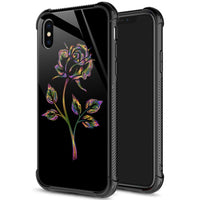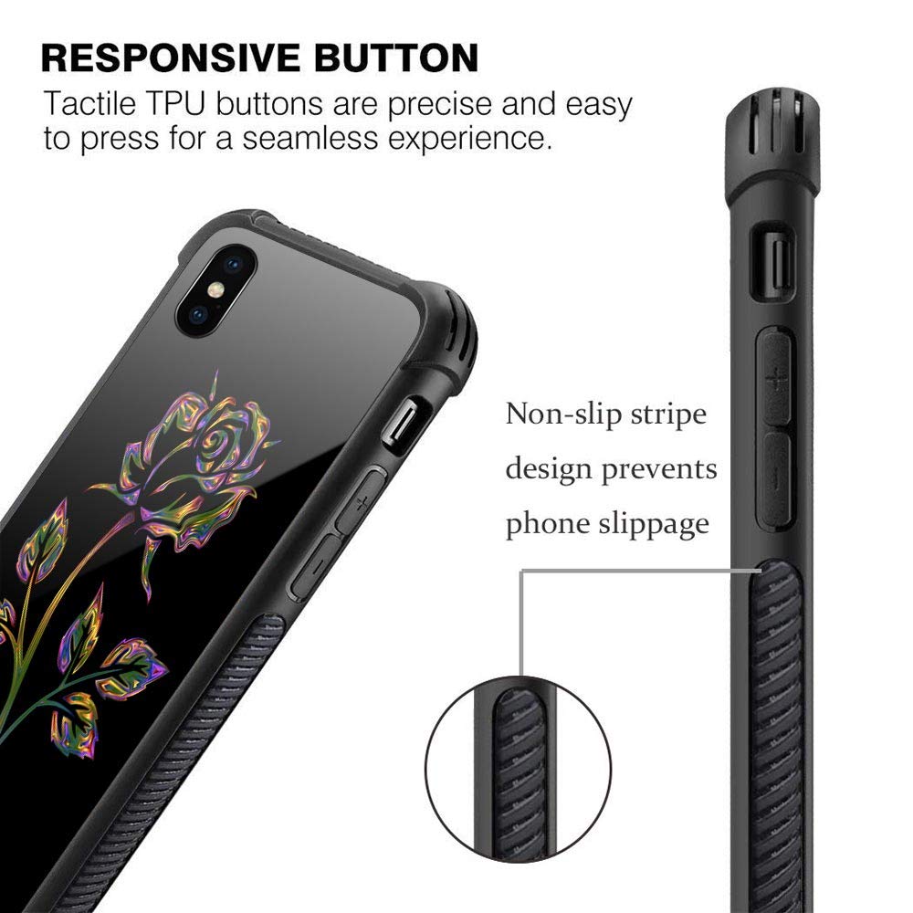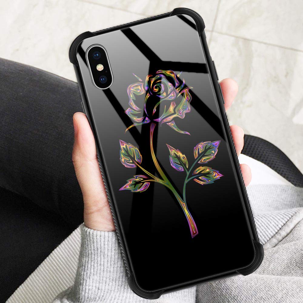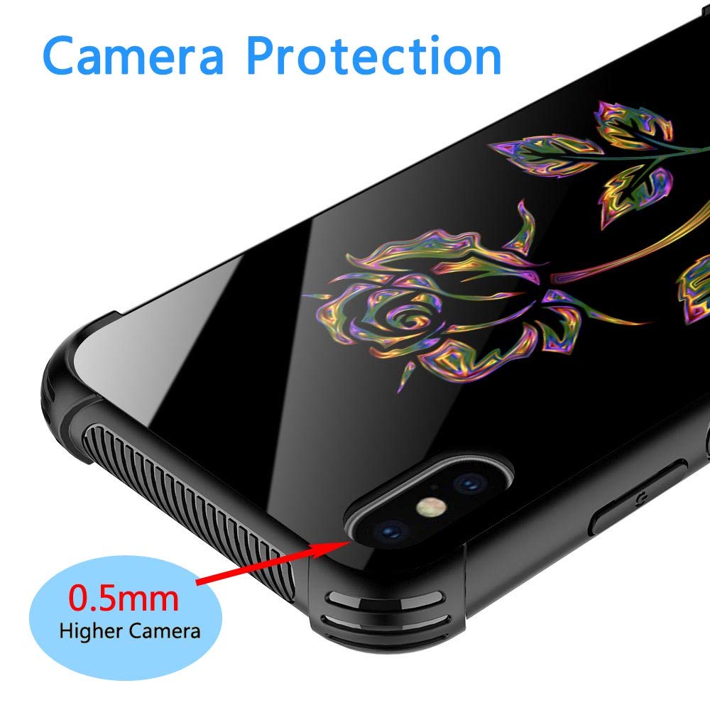 Iphone Xs Max Case,9H Tempered Glass Iphone Xs Max Cases Chromatic Gold Rose For Girls Womens, Pattern Design Shockproof Anti Sc