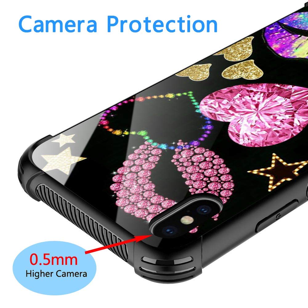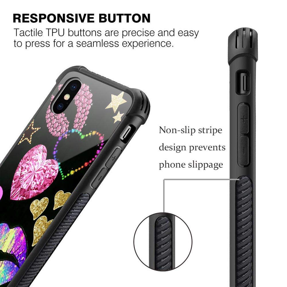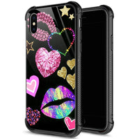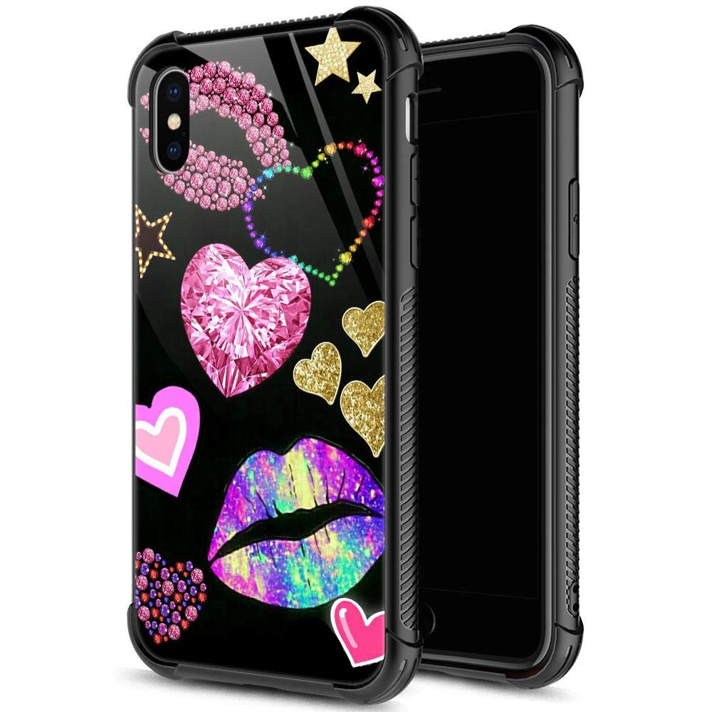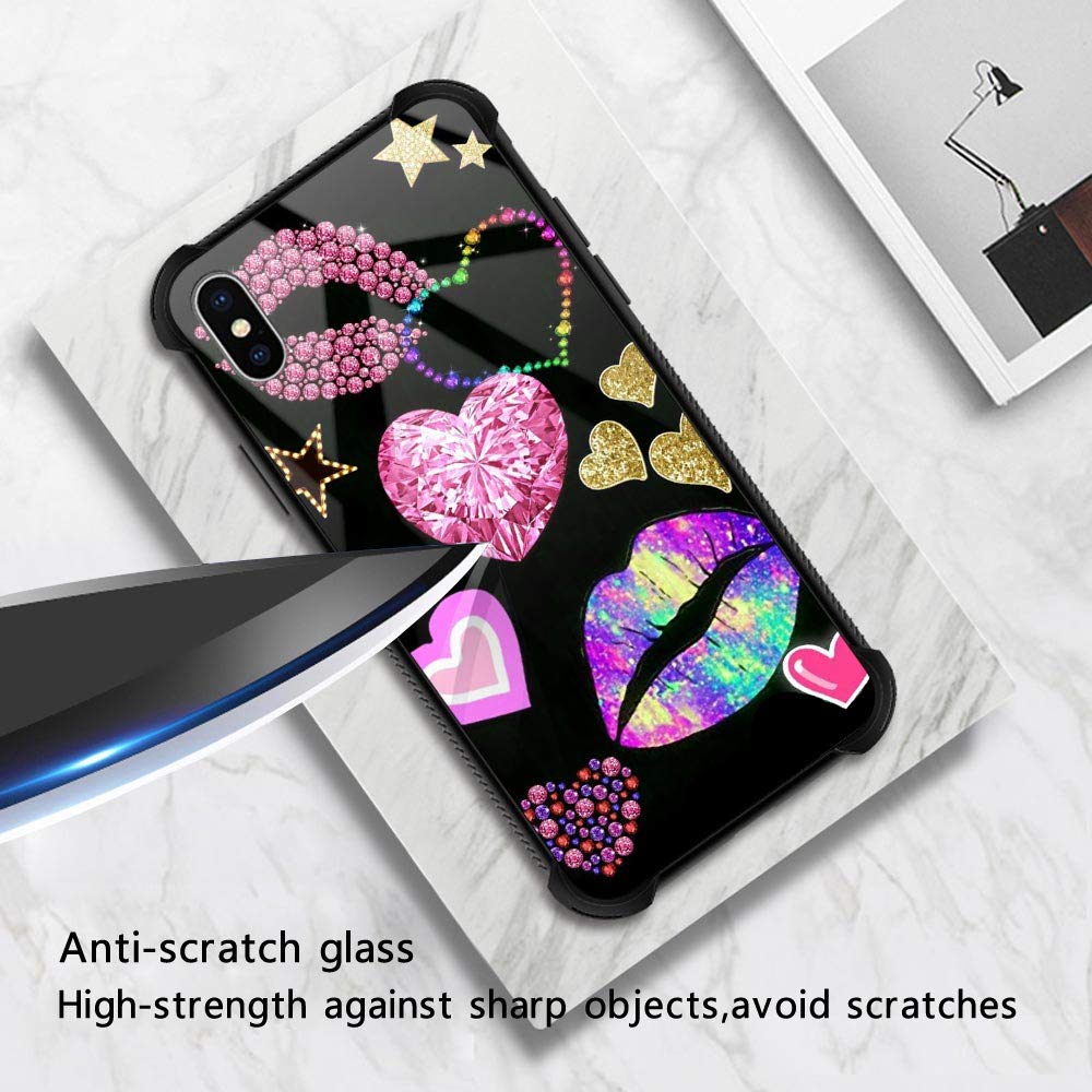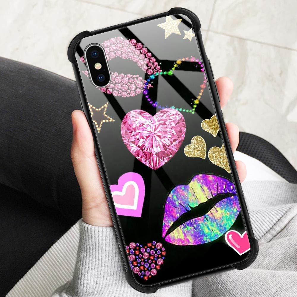 Iphone Xs Max Case,9H Tempered Glass Iphone Xs Max Cases Diamond Heart And Lips For Girls Women,Soft Silicone Tpu Bumper Case Fo