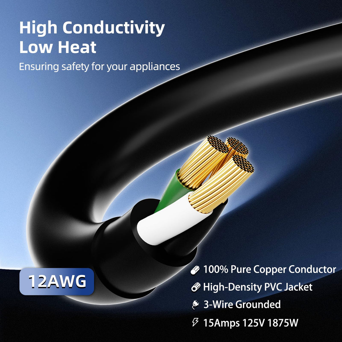 The Islewire 15-Foot 12 Gauge Heavy Duty Extension Cord With 3-Prong Connectors Is Ideal For Extending The Reach Of Power Tools, Gardening Appliances, And Other Power-Hungry Equipment (Such As Holiday Lights Decoration, Block Heaters, Lawn Mowers, And Snow Removal Equipment). This 3-Outlet Extension Cord Can Handle 15 Amps, 125 Volts, And 1875 Watts, Making It Suitable For Garages, Homes, Offices, And Various Indoor And Outdoor Environments. Designed With Three Grounded Outlets At Different Angles, This 12/3 Multiple Outlets Extension Cord Makes It Easy To Power Multiple Appliances Simultaneously Without Blocking Each Other. The Multi-Tap Pig-Tail Extension Cord Is Super Convenient, Letting You Add Another Tool Or Device Without Needing An Extra Cord. Constructed With Upgraded Sjtw (Service, Junior, Thermoplastic, Weather) Wire, This Heavy Duty Extension Cord Is Designed For Durability And Longevity, Capable Of Withstanding Temperatures Ranging From -40F To 140F. It Remains Flexible And Tangle-Free In All Weather Conditions Without Becoming Stiff Or Cracking. The High-Density Pvc Material Ensures Resistance To Breakage During Long-Distance Movement And Stretching. The Built-In Led Indicators On The 3 Prong Extension Cord End Make It Simple To Judge Whether The Power Is Turned On Or Not. The Black Extension Cord Is Ideal For Use In Dark Conditions, From Overcast Days To Nighttime. Our 15 Ft Extension Cord With Multiple Outlets Is Etl Certified, Ensuring The Highest Safety Standards. We Stand Behind Our Extension Cord Splitter With A 3-Year Replacement And Return Guarantee, Along With Free Lifetime Technical Support. Count On Our 3 Plug Extension Cord To Ensure The Safety And Efficiency Of Your Equipment, Making It An Ideal Choice For All Your Extension Cord Needs, Whether You Need An Outdoor Extension Cord Waterproof, A Heavy Duty Extension Cord For Your Garage, Or An Extension Cord With Multiple Outlets For Your Home Or Office.