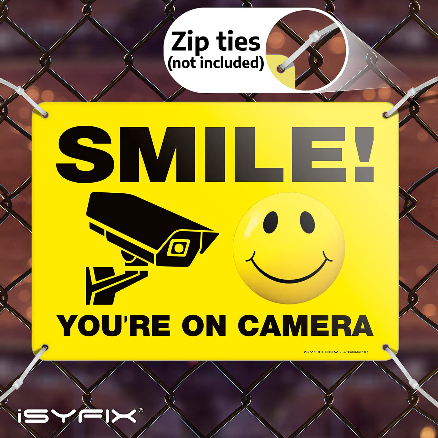 Isyfix Smile You'Re On Camera Signs For Business 1 Pack 10X7 Inch 100% Rust Free .040 Aluminum Sign, Laminated For Uv, Weath