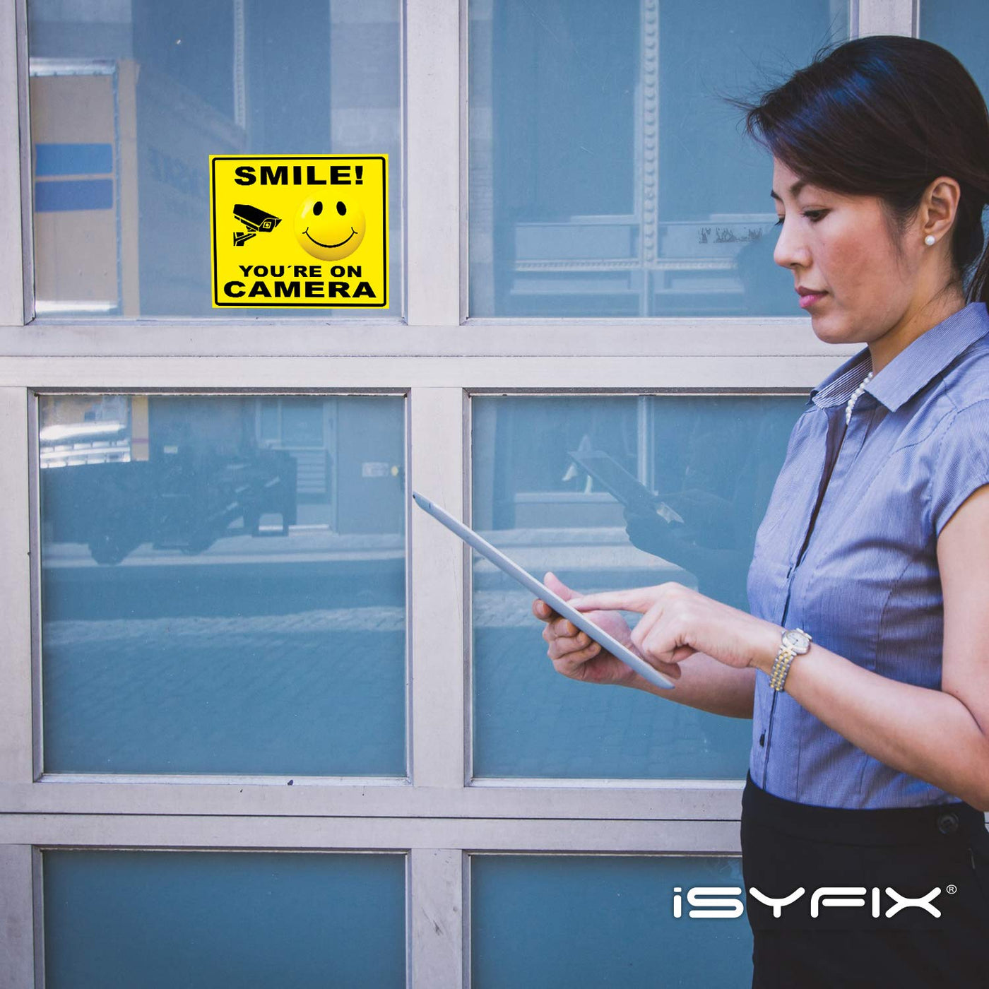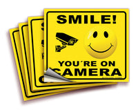 Isyfix Smile You'Re On Camera Stickers For Business 4 Pack 7X6 Inch Self Adhesive Vinyl Decal, Laminated For Ultimate Uv Pro
