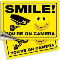 Isyfix Smile You'Re On Camera Stickers For Home 2 Pack 10X7 Inch Self Adhesive Vinyl Sign, Laminated For Uv Protection, Weat