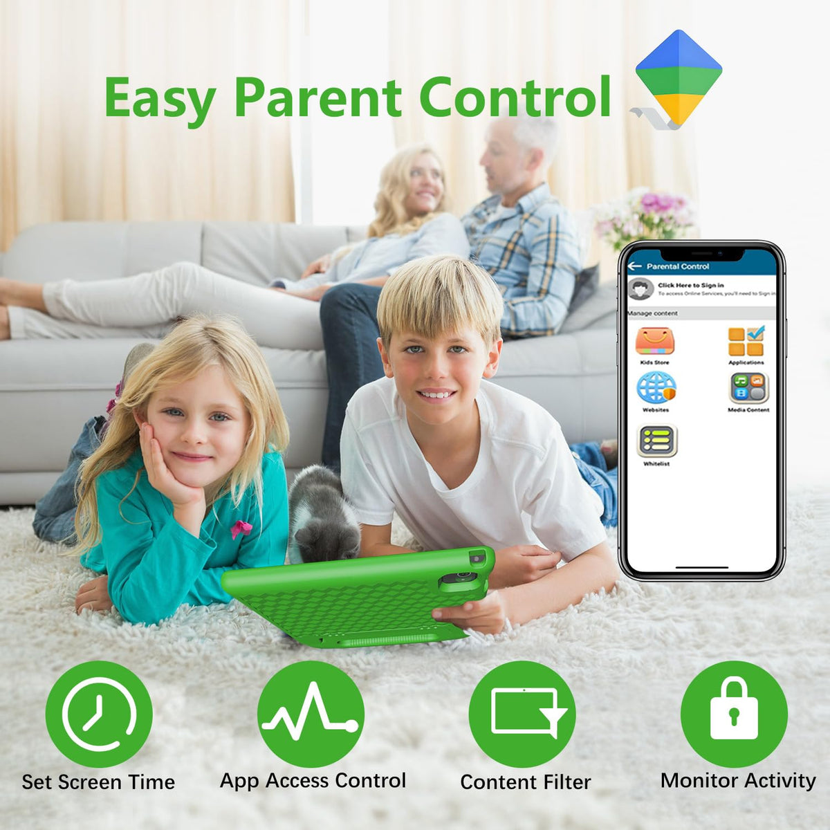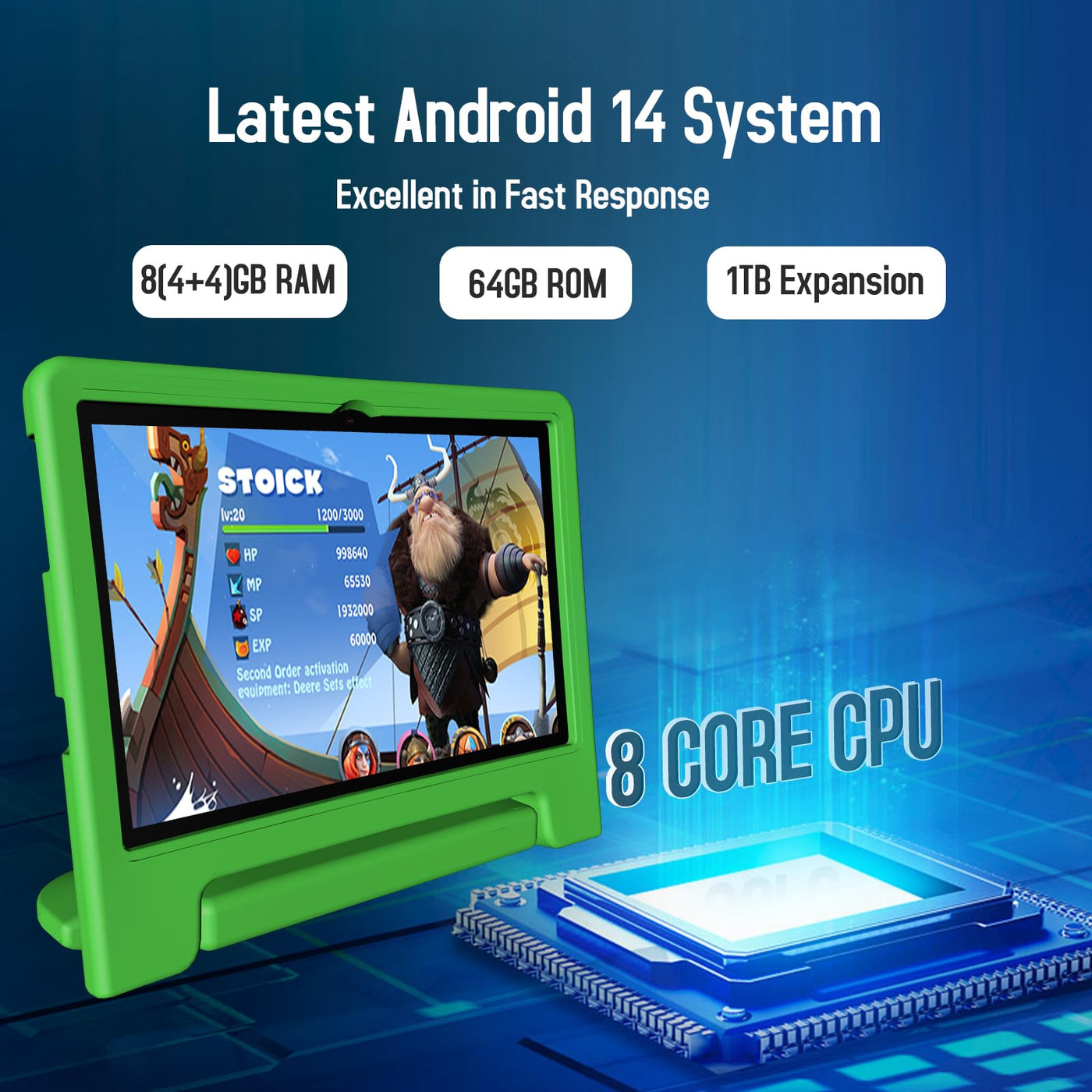 ?Android 14.0 / 8Gb + 64Gb? This Kids Tablet Features Android 14.0 Os, An 8-Core Processor, And 8(4+4)Gb Ram For Speedy, Efficient Performance. With 64Gb Storage, Expandable Up To 1Tb With A Sd Card (Not Included). Gms Certified, It Supports Popular Apps Like Youtube, Netflix, And Disney+. Ideal For Ages 3 And Up. Note: Includes A 2-Meter Charging Cable, Offering Flexibility For Use From Various Locations Like The Couch Or Bed, Without Being Restricted By Outlet Distance. | ?Parental Control Mode?Android 14 Tablet Is Specially Designed For Kids With The Google Kids Space For Music, Drawing, Learning, Stories, Calculations, Games And More. Parents Can Set Separate Profiles For Each Kid, Add Or Block Apps, Set Screen Time Limits, And Lock Their Kids Tablets | ?Hd 10 Large Screen & 2Mp+5Mp Dual Camera?Experience An Immersive Visual Delight With Our Kids Tablet Featuring A 10 Hd Screen With A 1280*800 Ips Touchscreen. Enjoy Vibrant Colors, High Contrast Ratio, And Wide Viewing Angles For Optimal Viewing.Equipped With A 5Mp Rear-Facing Camera And A 2Mp Front-Facing Camera, This Tablet Allows You To Seamlessly Switch Between Online Courses, Video Calls, And Creative Tasks. Enhance Parent-Child Interaction And Capture Memorable Moments Effortlessly | ?Large Battery Capacity?The 6000Mah Battery And Low-Power Cpu Enhance Your Experience And Allows You To Enjoy Up To 12 Hours Of Reading, Watching Shows, Surfing The Web. Tablet For Kids Suitable For Long-Distance Flights Or Road Trips. Wonderful Companion To Your Kids For Playing And Learning | ?2-Year Warranty?Kids Tablets Make Ideal Birthday Gifts For Kids, And Kids Tablet Offers A 2-Year Warranty And Lifetime Customer Service, We Will Provide You With A Satisfactory Solution Within 24H. Package Includes: 1X Tablet, 1X Tablet Case, 1X Screen Protector, 1X Usb Cable, 1X User Guide
