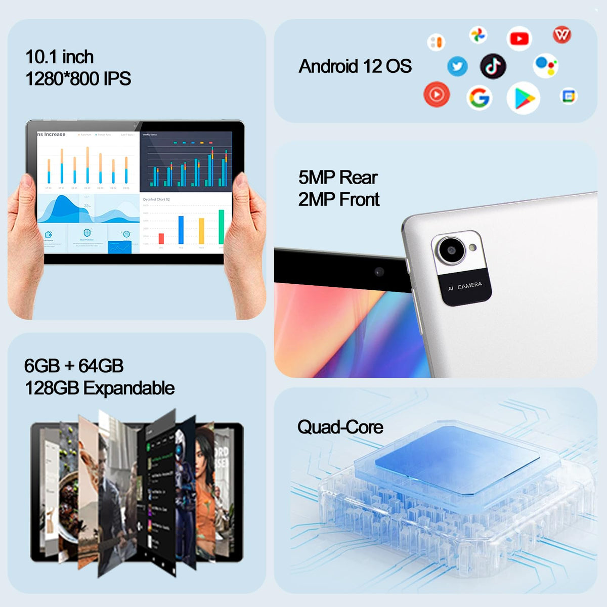 Itmeipc Tablet, 10.1'' Android Tablet With Quad Core Processor, 6Gb Ram 64Gb Rom, 1280 * 800 Hd Ips Touchscreen, 6000 Mah Batter