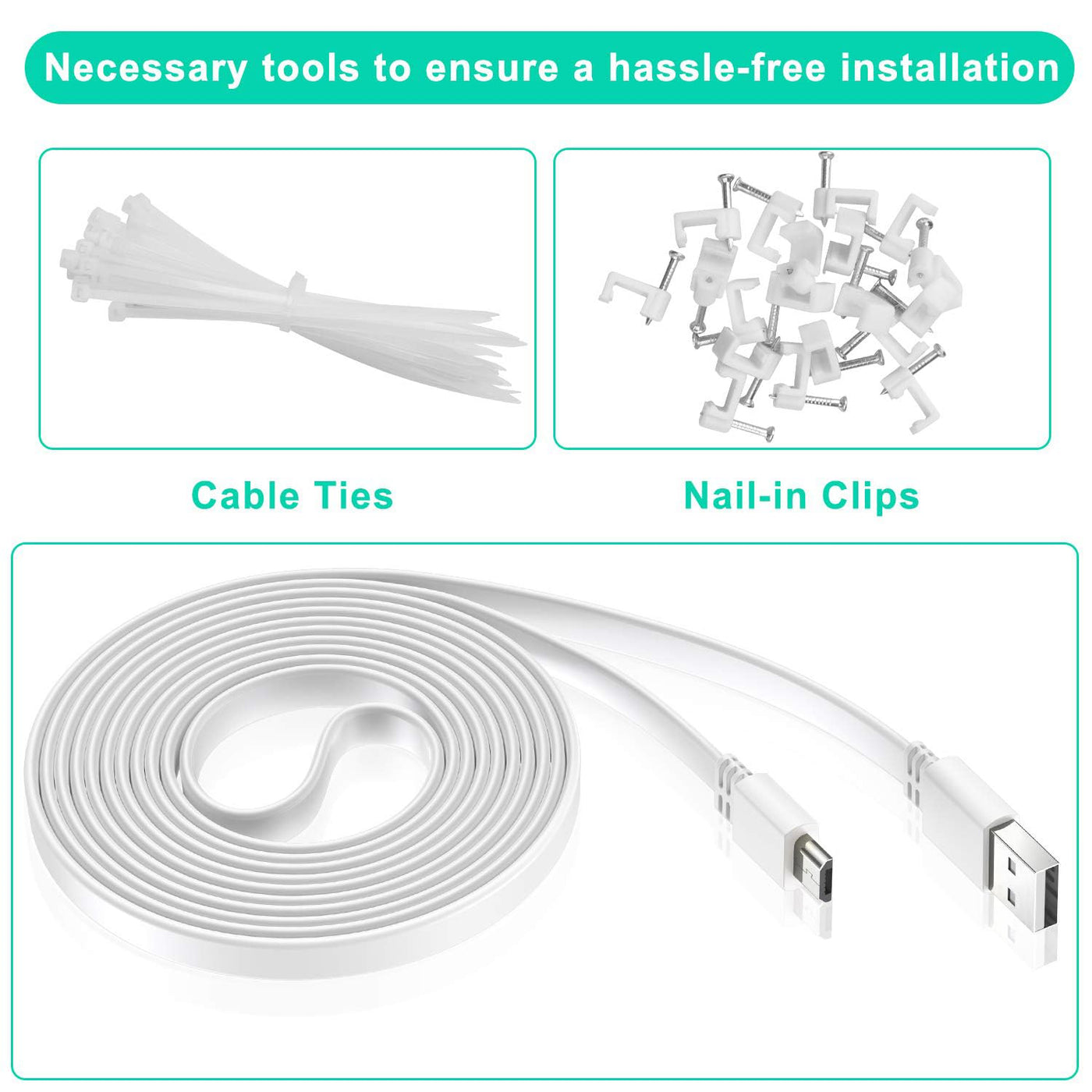 (The Missing Piece In Your Surveillance System) Looking To Power Up Your Micro Usb Security Camera But The Power Outlet Is Nowhere Near The Area That Needs To Be Covered By Your Surveillance System? Then This Usb-A To Micro-Usb Camera Power Cord Is For You. | (Easy To Install) The Rich Length Option Of This Power Cable Means You Can Set Up Your Camera Exactly Where You Need To, Without Having To Worry About The Distance Between The Power Outlet And Your Device. The Enclosed Nail-In Clips And Ties Make It Easy To Arrange The Cable Alongside The Wall And Stop The Cable From Disrupting The Decor Of Your Property. | (Superior Build) With Its Heavy-Duty Construction, This Power Extension Cable Is Built To Last, Standing Up To Harsh Weather Conditions And Providing Stable Power Supply To Your Security Cameras Over Long Distances. | (All-Terrain, All-Round) This Power Cable Is Perfect For A Wide Range Of Using Scenarios. Whether You'Re A Homeowner Looking To Keep Your Property And Family Safe Or A Business Owner Wanting To Protect Your Assets, This Power Cable Is An Essential Investment. | (The Investment That'S Worth Every Penny) Don'T Let Your Security System Fall Short! Invest In A Power Cable For Security Cameras And Take Full Advantage Of Your Cameras' Capabilities, Expanding Your Surveillance Range And Protecting Your Property Like Never Before. It'S An Accessory You Won'T Regret Making Part Of Your Security System!
