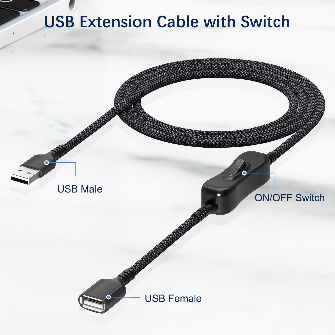 Itramax Usb On Off Switch Cable,Usb Extension Cable Support Data And Power 10 Ft,Inline Usb Power Switch,Usb Male To Female With Toggle Switch For Led Lamp,Led Light Strips,Usb Fan,Driving Recorder