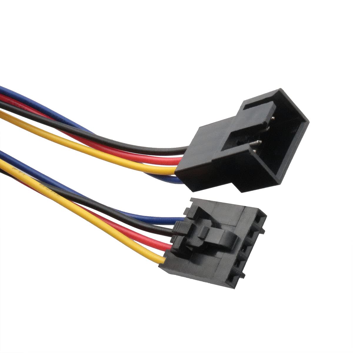 Q: What materials are used in the construction of this fan adapter cable?A: The adapter cable is made of high-quality insulated PVC and features tinned copper conductors for stable and reliable connections.