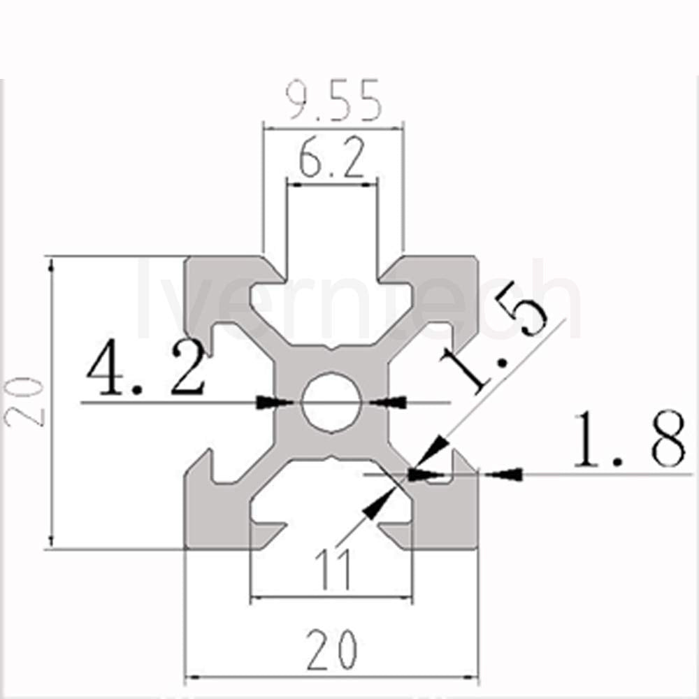 Q: What is the length of the Iverntech 2020 V Slot Aluminum Extrusion?A: The Iverntech 2020 V Slot Aluminum Extrusion measures 1000mm, which is approximately 39.37 inches.