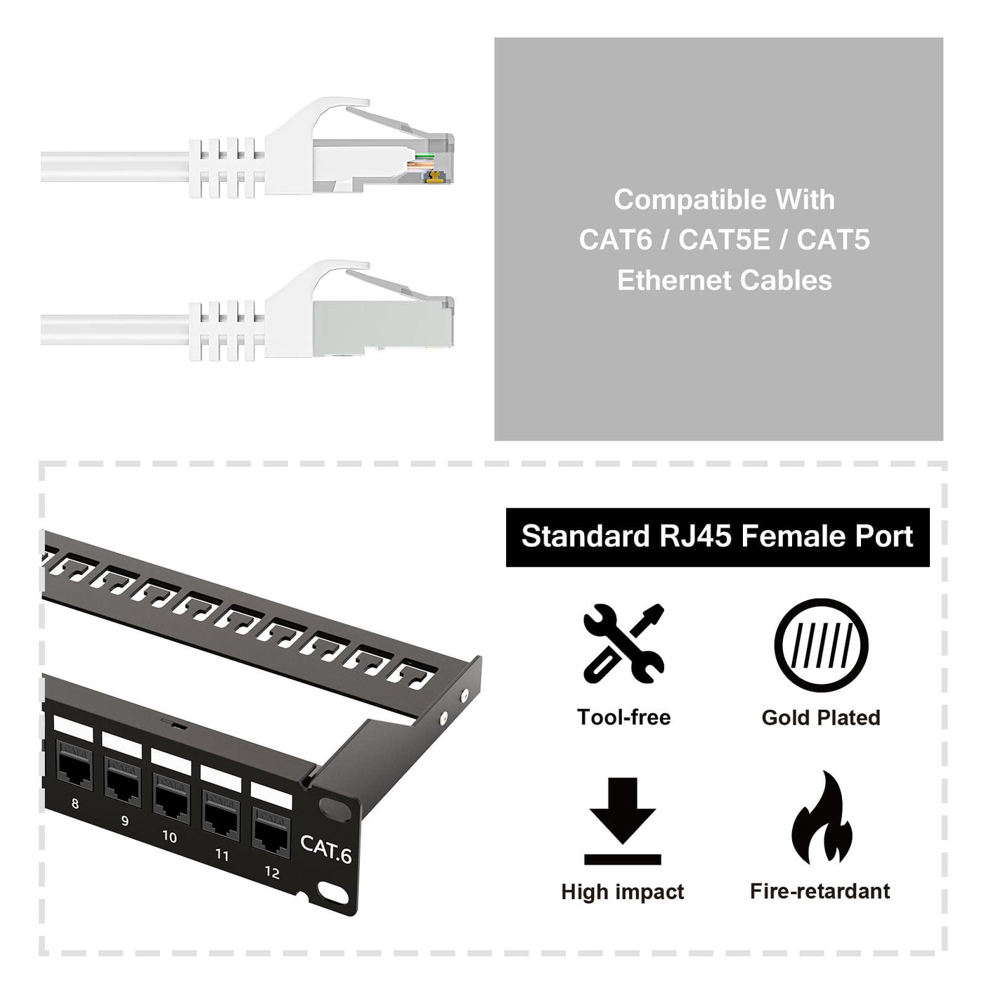 Iwillink 10Gbps Patch Panel 12 Port, 10 Inch Through Coupler Rj45 Cat6 Patch Panel With Back Bar, Wallmount Or Rackmount, Compat