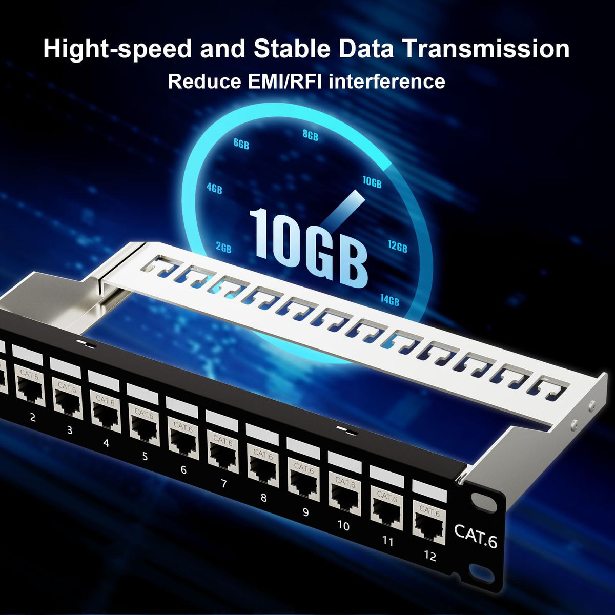 Iwillink 10Gbps Patch Panel 12 Port, Rj45 Through Coupler Cat6 Patch Panel Stp Shielded With Back Bar, 19'' Wallmount Or Rackmou
