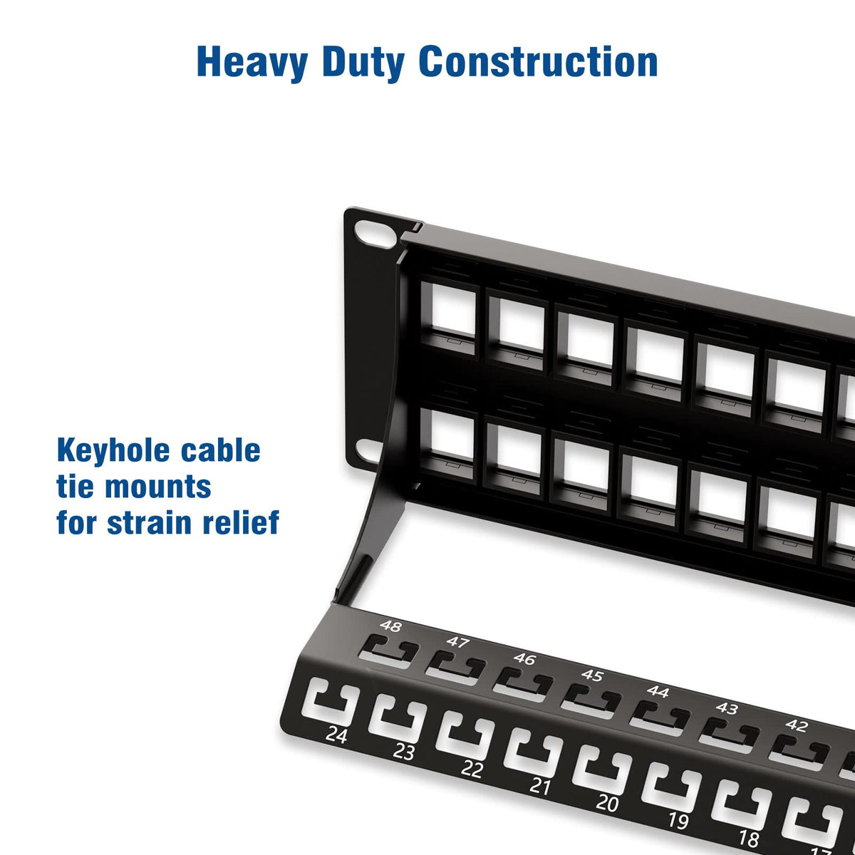 Iwillink Blank 48 Port Keystone Patch Panel, 2U 19'' Rackmount/Wallmount With Metal Housing, Includes 24 Blank Inserts For Custo