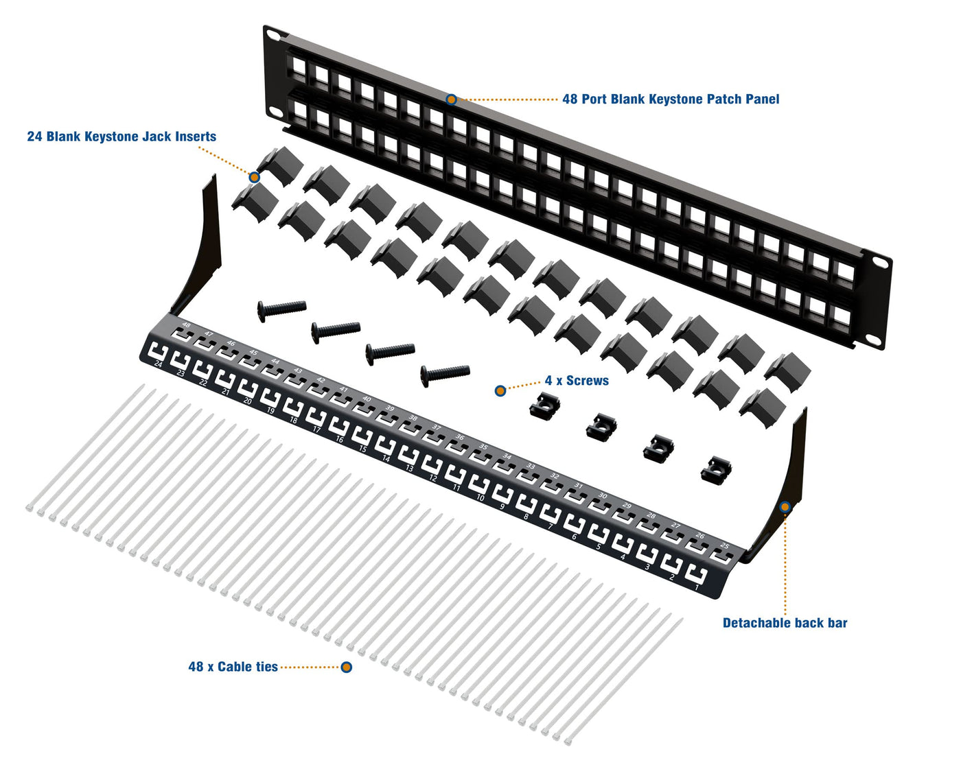 Iwillink 48 Port Blank Keystone Patch Panel With (24-Pack) Blank Keystone Jack Inserts - 2U 19'' Metal Rackmount Or Wallmount Housing For Keystone Jacks/Keystone Panel