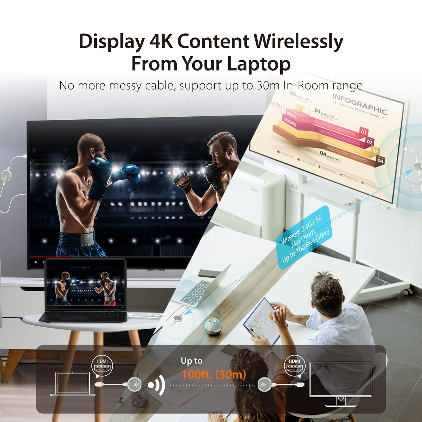 J5Create Screencast 4K Wireless Hdmi Transmitter And Receiver, Wireless Hdmi Extender, Support 4K30Hz / 1080P60Hz, 2.4/5Ghz, For