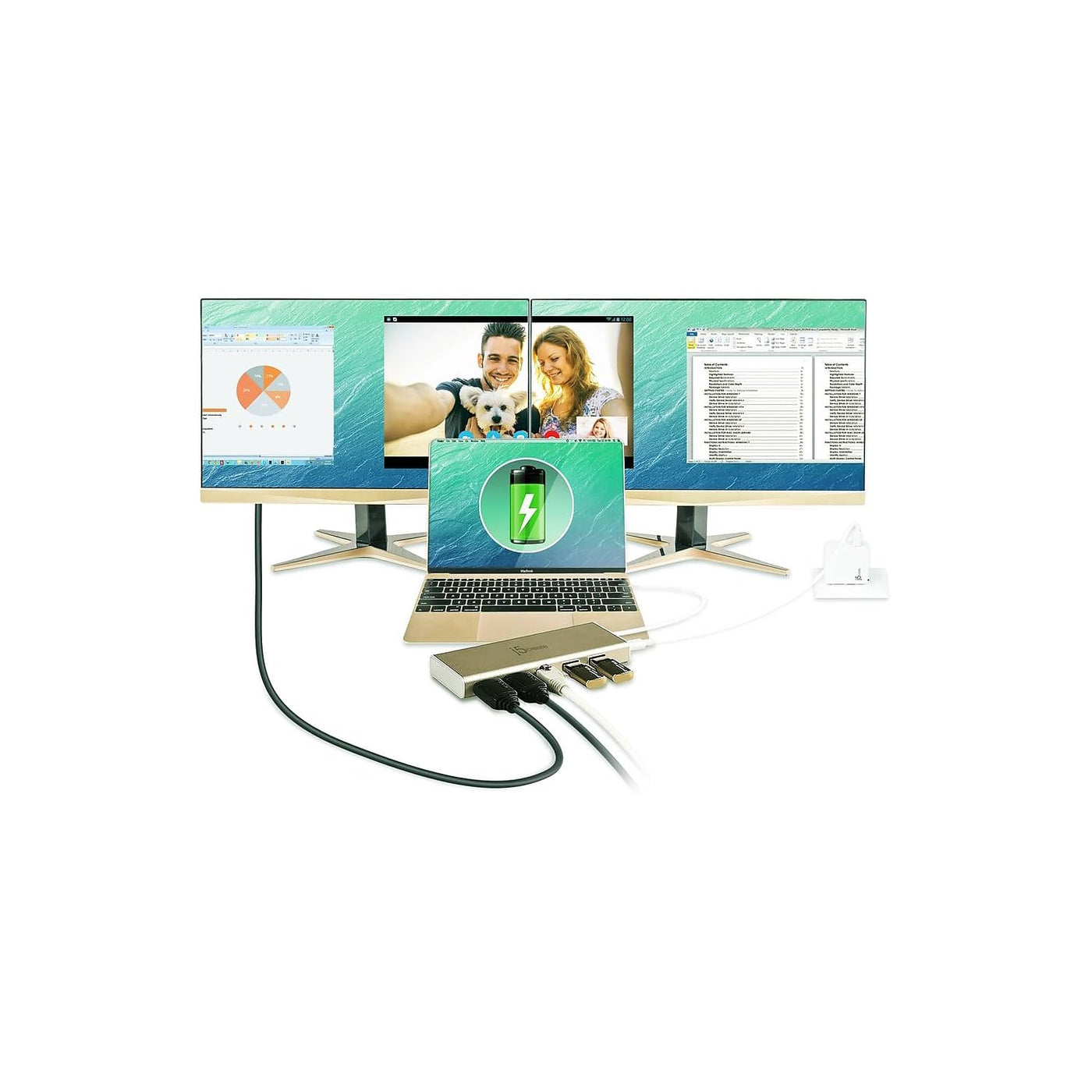 J5Create Usb-C Mini Dock- Type C Hub With 2X Hdmi, 2X Usb 3.0, Ethernet, Power Delivery 2.0 (Jcd381)