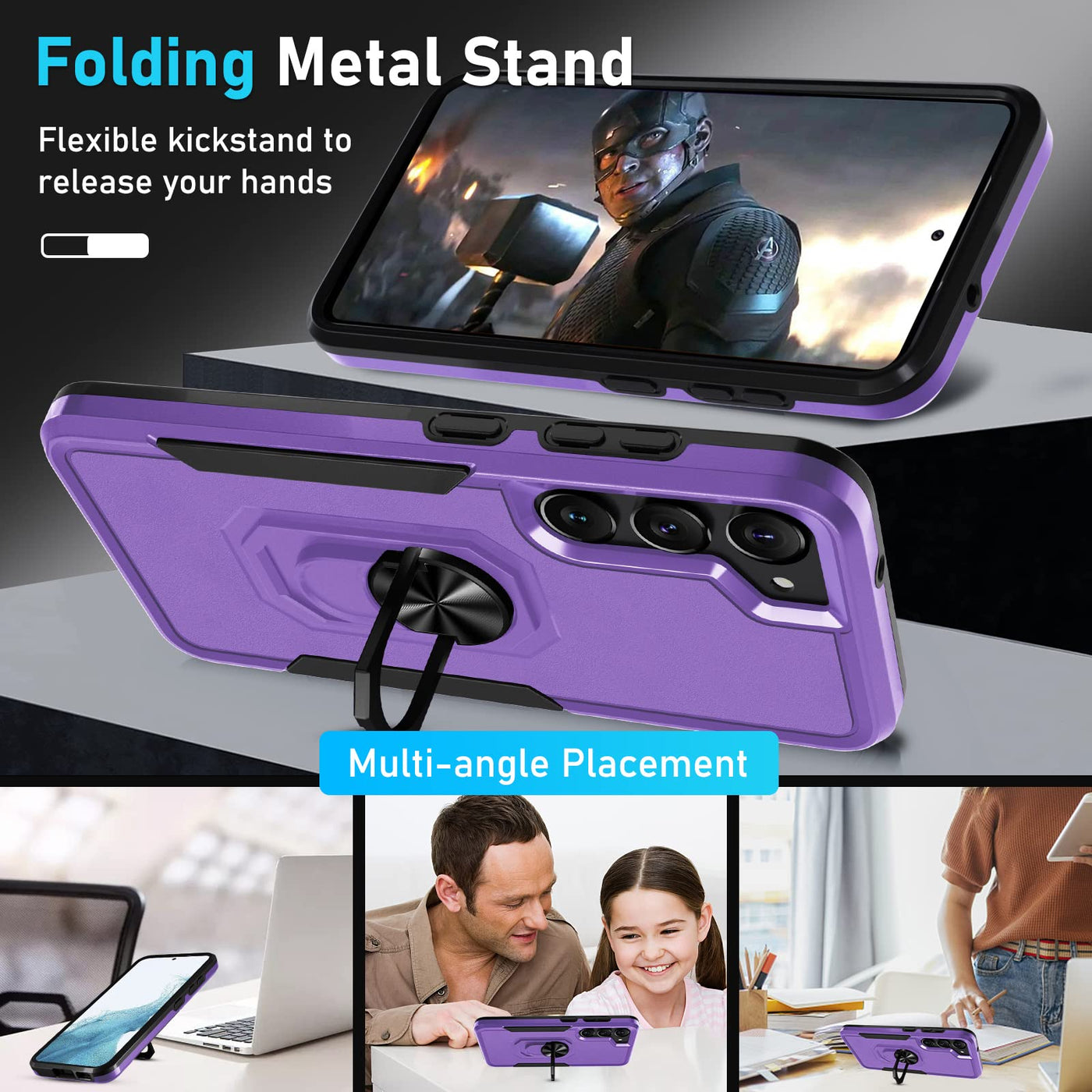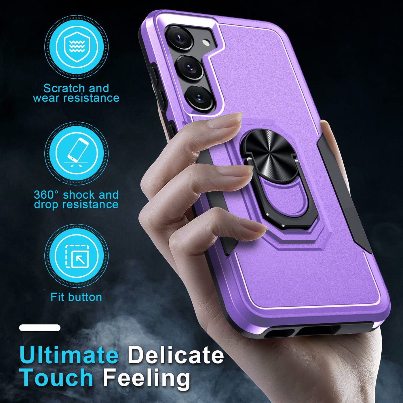 Janmitta Compatible With Galaxy S23 Case With Screen Protector+Camera Lens Protector,Heavy Duty Shockproof Full Body Phone Cover Built In Metal Ring Holder Kickstand,2023 Lavender