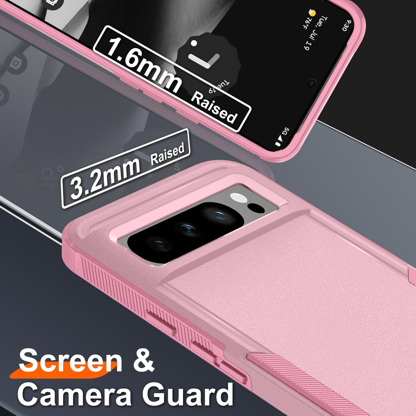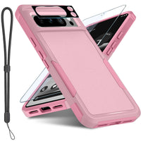 Janmitta For Google Pixel 8 Pro Case With Screen Protector+Camera Lens Protector+Wrist Strap Lanyard,Heavy Duty Shockproof Full Body Phone Cover,2023 Girly Pink