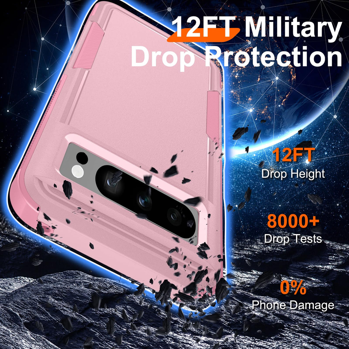 Janmitta For Google Pixel 8 Pro Case With Screen Protector+Camera Lens Protector+Wrist Strap Lanyard,Heavy Duty Shockproof Full