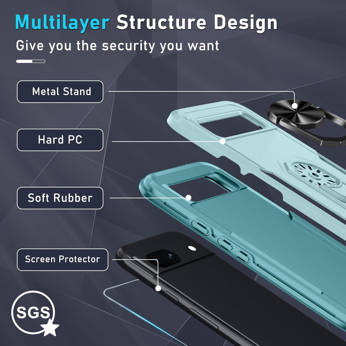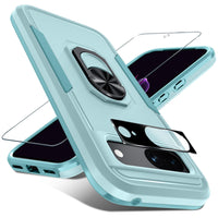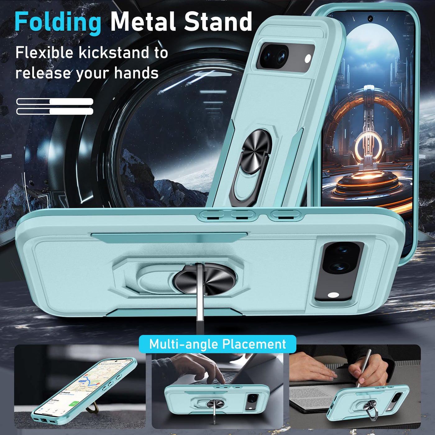 Janmitta For Google Pixel 8A Case With Screen Protector+Camera Lens Protector,Heavy Duty Shockproof Full Body Phone Cover Built In Metal Ring Holder Kickstand,2024 Mint Green