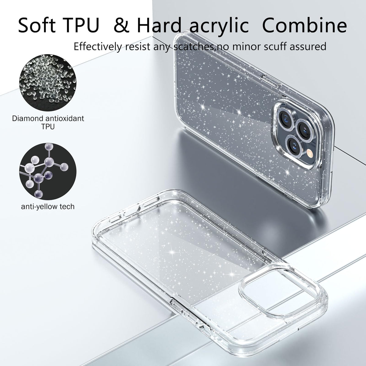 Q: Is this case compatible with other iPhone models?A: No, the Jasmeas Design Clear Glitter Case is specifically designed for the iPhone 15 Pro only and is not compatible with other iPhone versions.