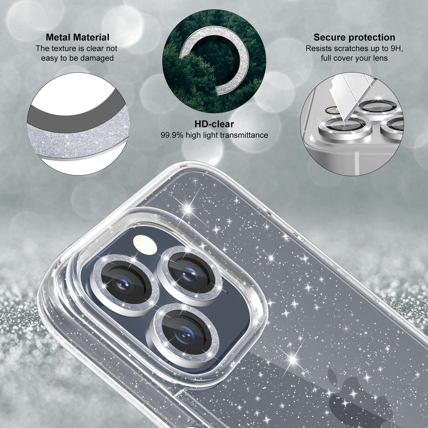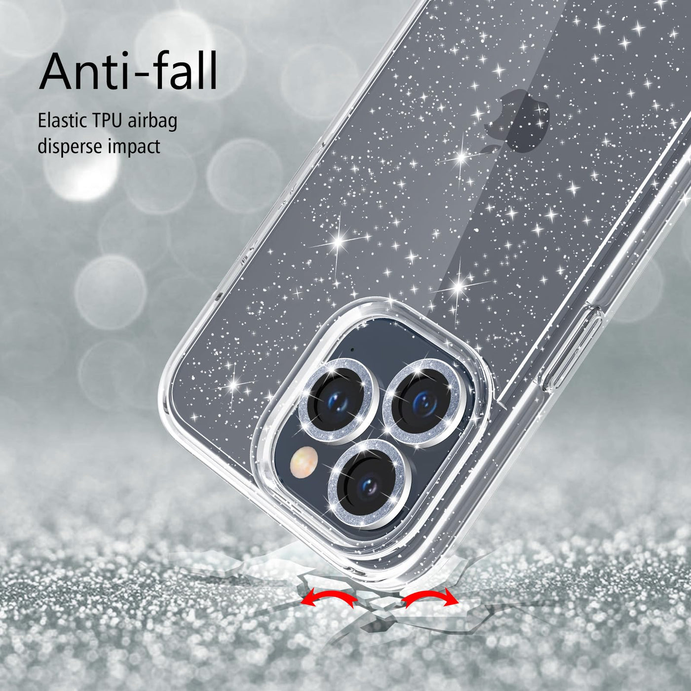 Jasmeas Design For Iphone 15 Pro Case Clear Glitter, With [2 Pack] Screen Protector & [3 Pack] Camera Lens Protector Sparkle Pc