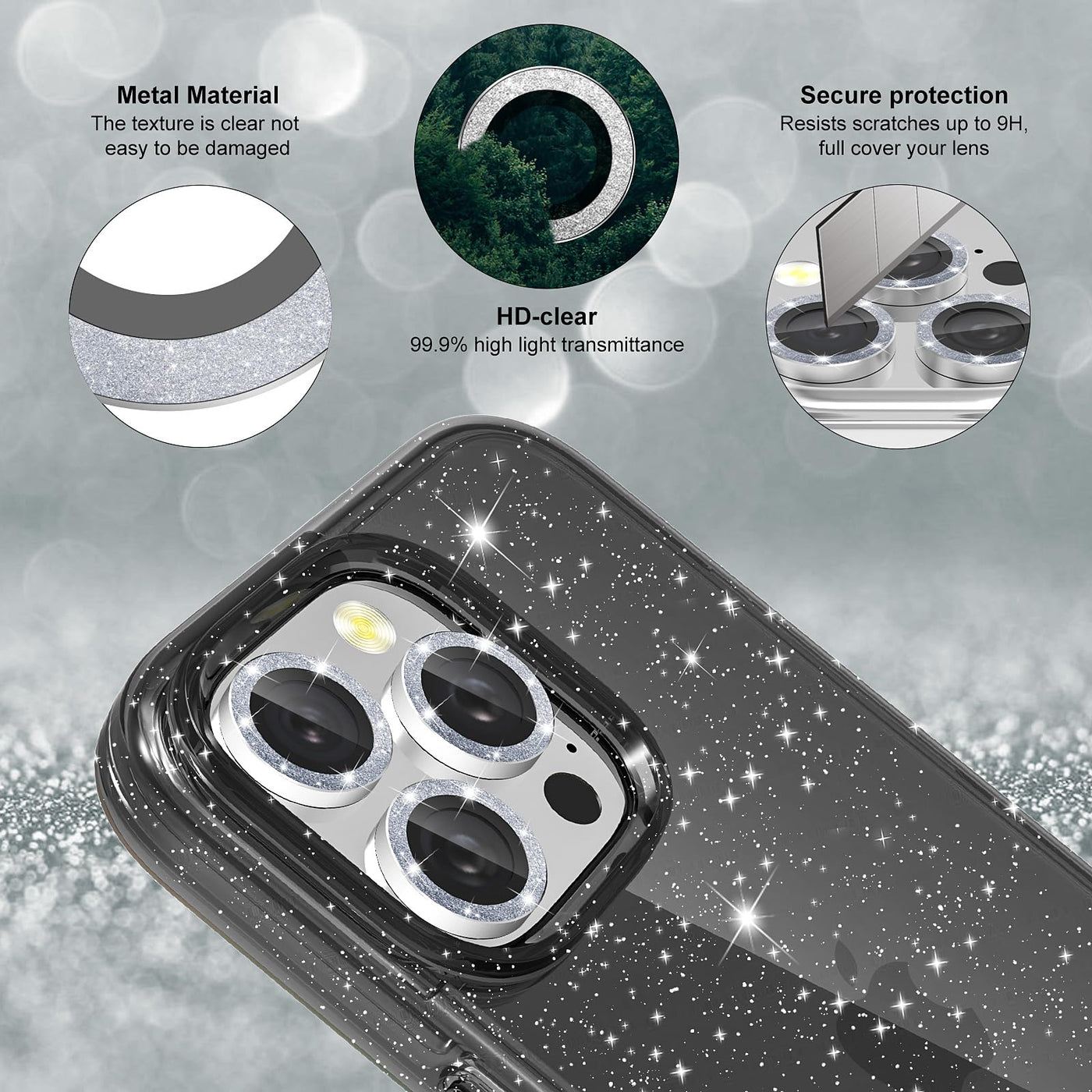 Jasmeas For Iphone 16 Pro Case Clear Glitter, With [2 Pack] Screen Protector & [3 Pack] Camera Lens Protector Sparkle Pc Hard Soft Tpu Silicone Bumper Cute Phone Cases For Women Girls (Black)