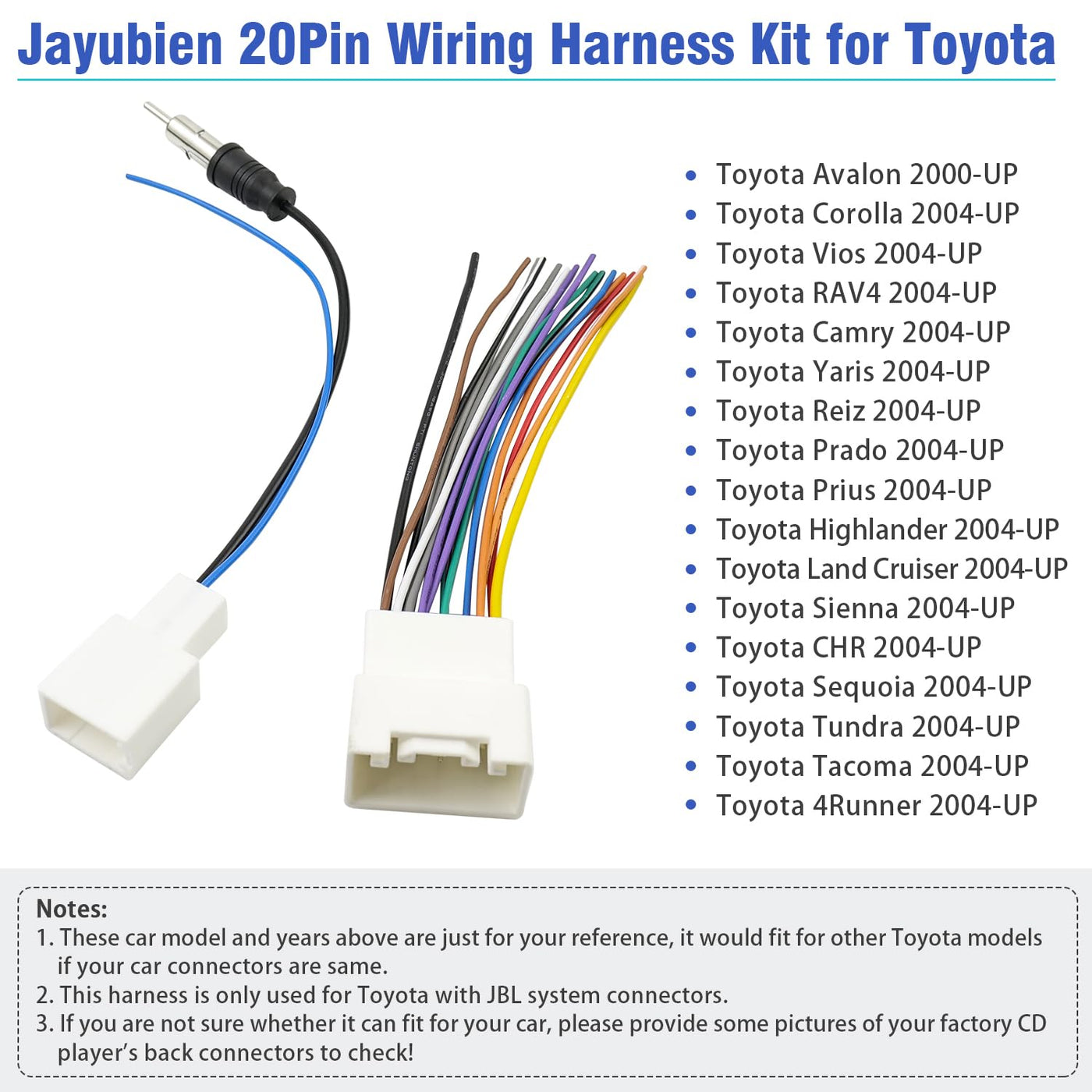 Jayubien Radio Wiring Harness Jbl Adapter Replacement For Toyota Highlander Sequoia Tundra Camry Corolla Vios Prado 20Pin Car St
