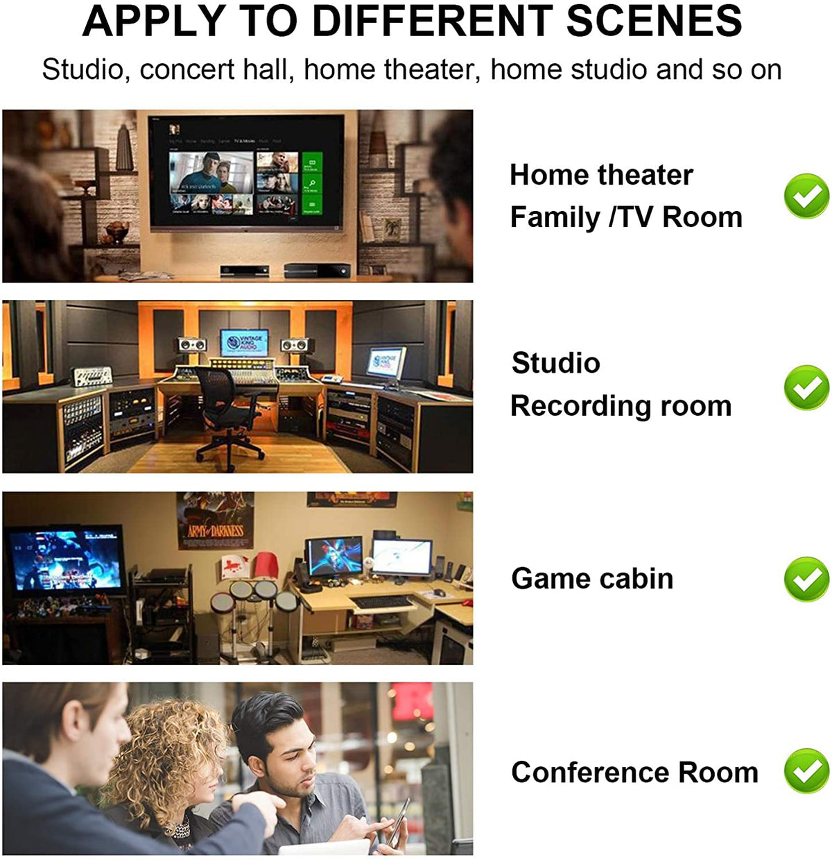 Professional Studio Grade Acoustical Treatments, Create Beautiful Recording Environments! Acoustic Foam Is Used To Remove Reverberation And Sound Reflections, Provide Sound Insulation Industrial And Domestic Applications Suitable For Sound Studios. Unlike Polyurethane Foam, Fiberglass And Rock Wool Have Health Risks. This Product Can Be Used As Acoustic Cover For Walls, Ceilings And Doors And Other Various Places Such As Theaters Or Movie Theaters, Recording Studios, And Other Busy And Crowded Places Such As Gyms, Subways, Stations, Offices, Schools, And Other Areas. This Product Is Great For Voice And Video Recording. Effective Sound Deadener For Standing Waves And Flutter Echoes, Especially When Used With Our Corner Bass Traps And Corner Blocks. It Also Reduces Slap-Back And Room Ring When Used In Medium-Sized Areas Like Isolation Booths, Recording Booths, Control Rooms, And Sound Studios. Use For Decoration Or Professional Applications. This Foam Is Ideal For Spot-Treating Production Studios, Practice Rooms Or Home Entertainment Centers. Also, This Foam Helps With Smaller Agitation Echo Complications. For Decorative Purposes, Wedges, Eggcrates And Pyramids Can Also Be Arranged Side-By-Side With The Acoustic Bass Traps, Corner Bass Traps Triamp And Other Bass Acoustic Foam. How Much Space Does One Tile Cover? 1'' X 12'' X 12'' Acoustic Panel Studio Foam Wedges Are 1 Inch In Thick And Covering 1 Square Foot. If You Purchase A 12 Pack Of 1'' X 12'' X 12'', That Would Cover 12 Square Feet. If You Purchase A 48 Pack Of 1'' X 12'' X 12'', That Would Cover 48 Square Feet. And So On. Foam Will Not Deteriorate Or Fall Apart Over Time. All That Is Required Is Dusting Over Long Periods Of Time.