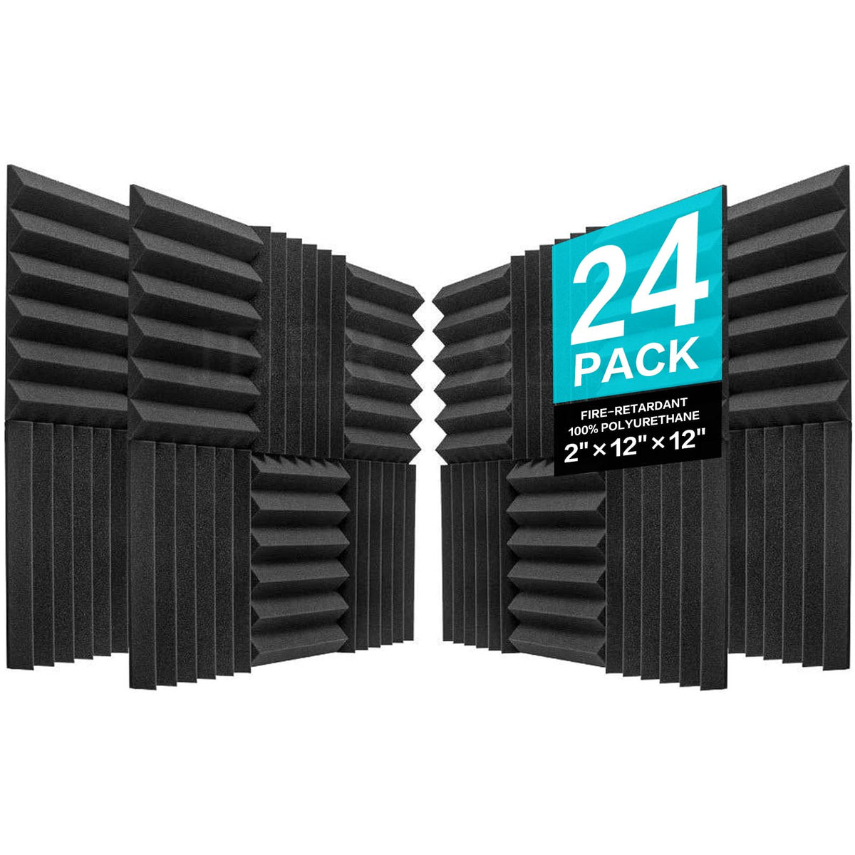Jber Acoustic Panels Studio Foam Wedges Fireproof Soundproof Padding Wall Panels 2'' X 12'' X 12'' (24 Pack Wedge 2'' Charcoal