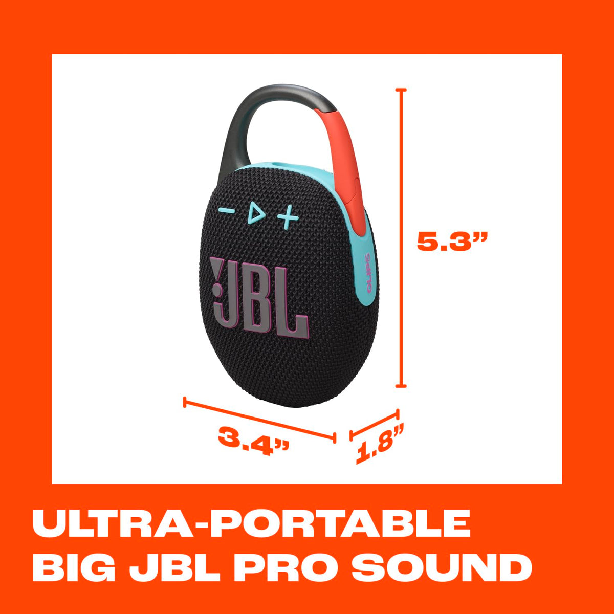 The Jbl Clip 5 Ultra-Portable Bluetooth Speaker Is Small Enough To Hold In One Hand, But Dont Let The Size Fool You-Its Big Where It Counts. A Wide, Fully Integrated Carabiner Is Big Enough To Clip To Just About Anything. The Powerful Driver And Passive Radiator Deliver Bigger, Louder Jbl Pro Sound And Punchy Bass. A Single Charge Gives You Up To 12 Hours Of Playtime-And Even More If Playtime Boost Is Turned On. Speaking Of Outside, Its Ip67-Certified Waterproof And Dustproof, So Its A Natural To Take On Your Next Hike Or Camping Trip. Pair Two Clip 5S Together For Stereo Sound, Or Instantly Connect It With Multiple Jbl Auracast-Enabled Speakers For Even Bigger Sound Over More Space. Plus Its Available In A Variety Of Colors, So Youre Sure To Find One That Fits Your Vibe. Every Day Is An Adventure With The Jbl Clip 5.