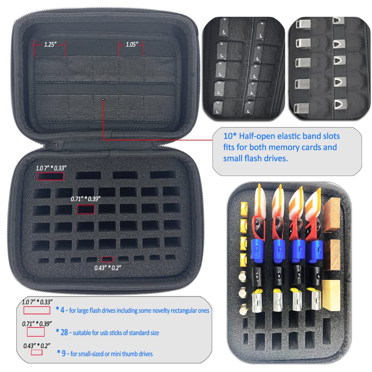 Jbos Usb Flash Drive Case Memory Cards Sd Sdxc Sdhc Cards Storage Case Electronic Accessories Organizer Holder Thumb Drive Case Compatible With Sandisk/Samsung/Samdata/Inland/Pny/Netac/Jbos (Case Only)