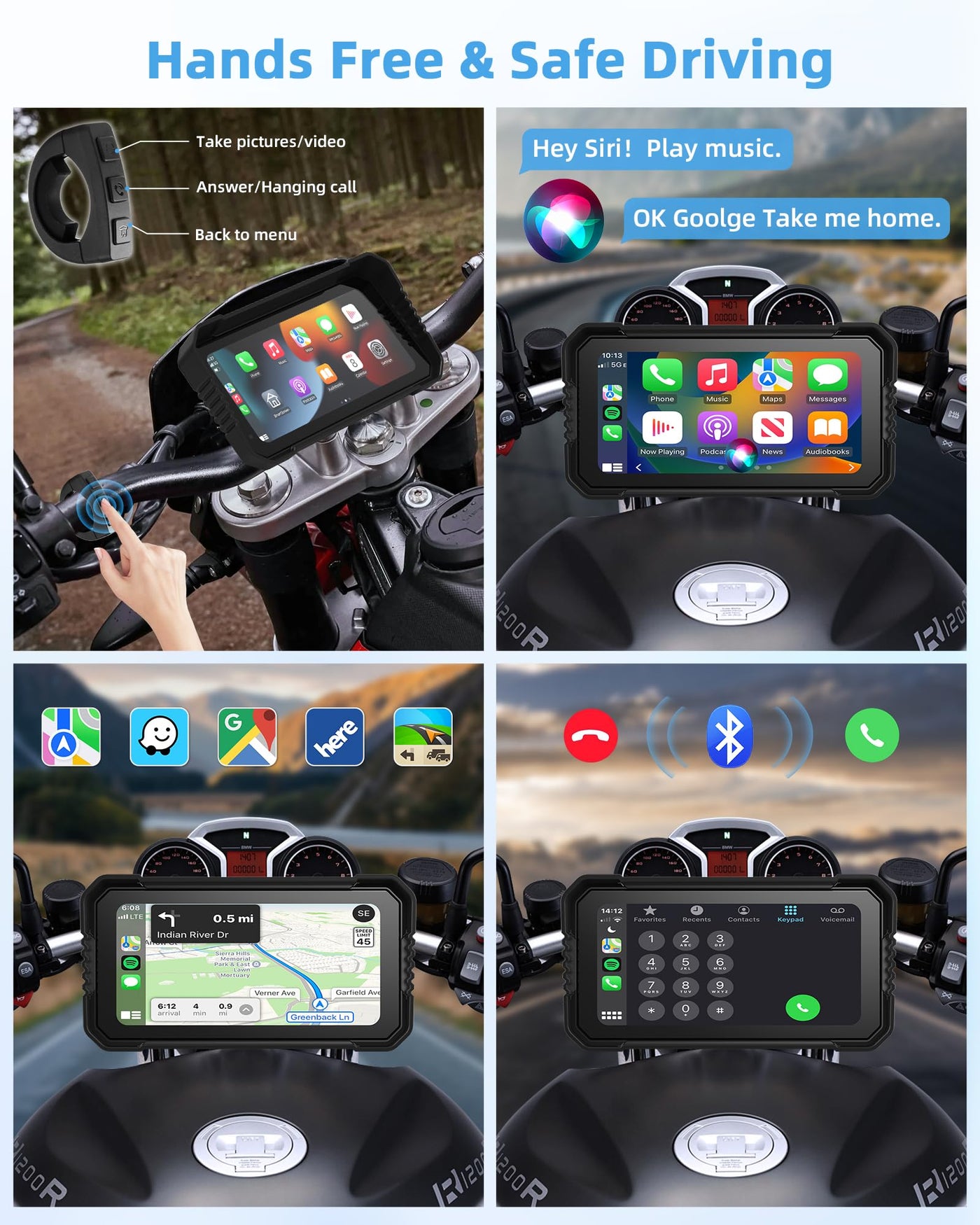 ?4K Motorcycle Dvr With Dual Cameras?The 6.25 Inch Motorcycle Carplay Comes With 4K Dashcam Function, Which Supports Front And Rear Split-Screen Display. With 64G Tf Card, It Can Realize Loop Recording, Parking Monitoring, G-Sensor And So On. Capture Important Footage In Time To Better Protect Your Car. Carplay Motorcycle Built-In The Latest Rv1126 Chip, Which Can Realize The Technical Features Of Multi-Level Noise Reduction And 3-Frame Hdr, Presenting More Vivid And Stable Video Images