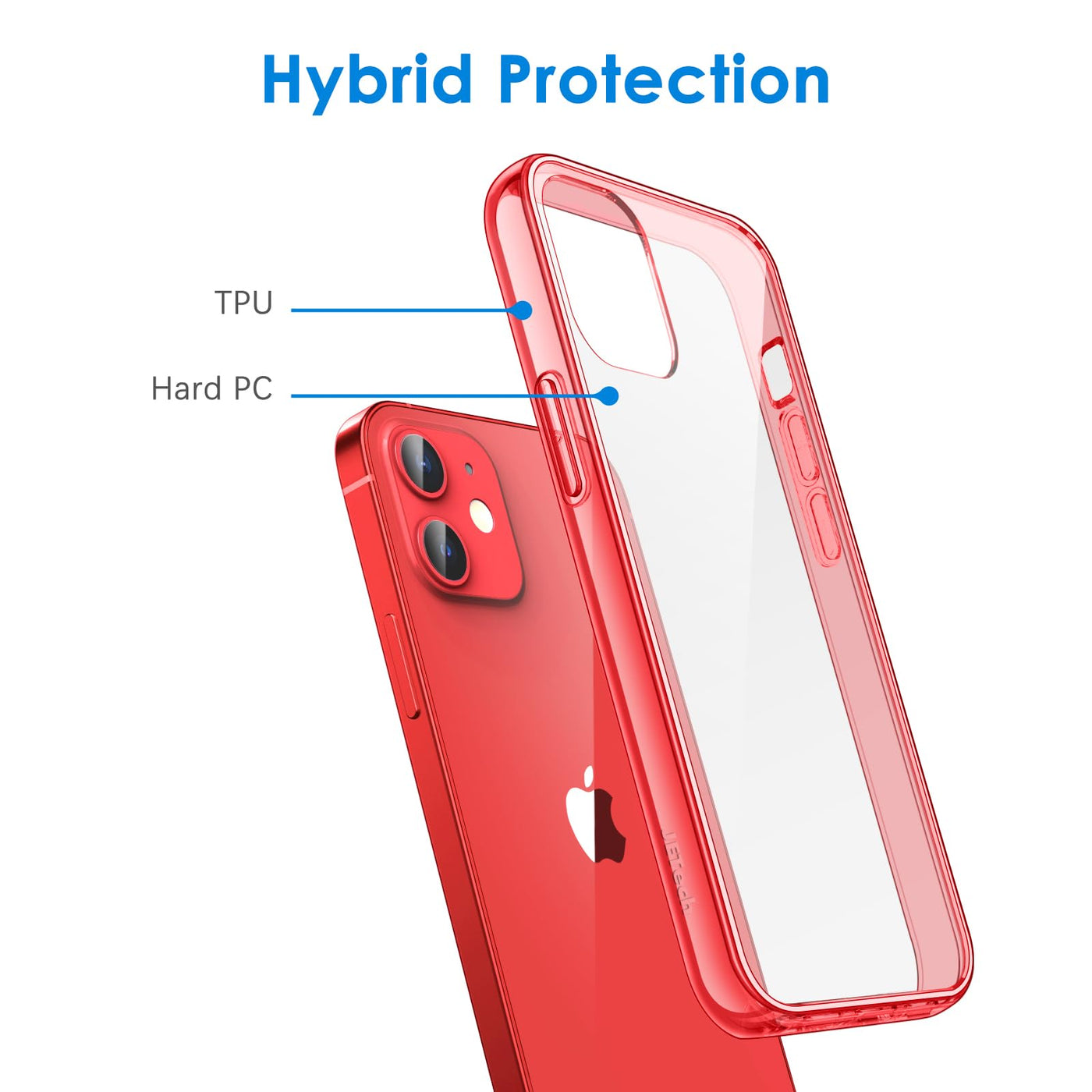 Jetech Case For Iphone 12 Mini 5.4 Inch, Transparent Shockproof Protective Case, Anti-Scratch Case (Red)