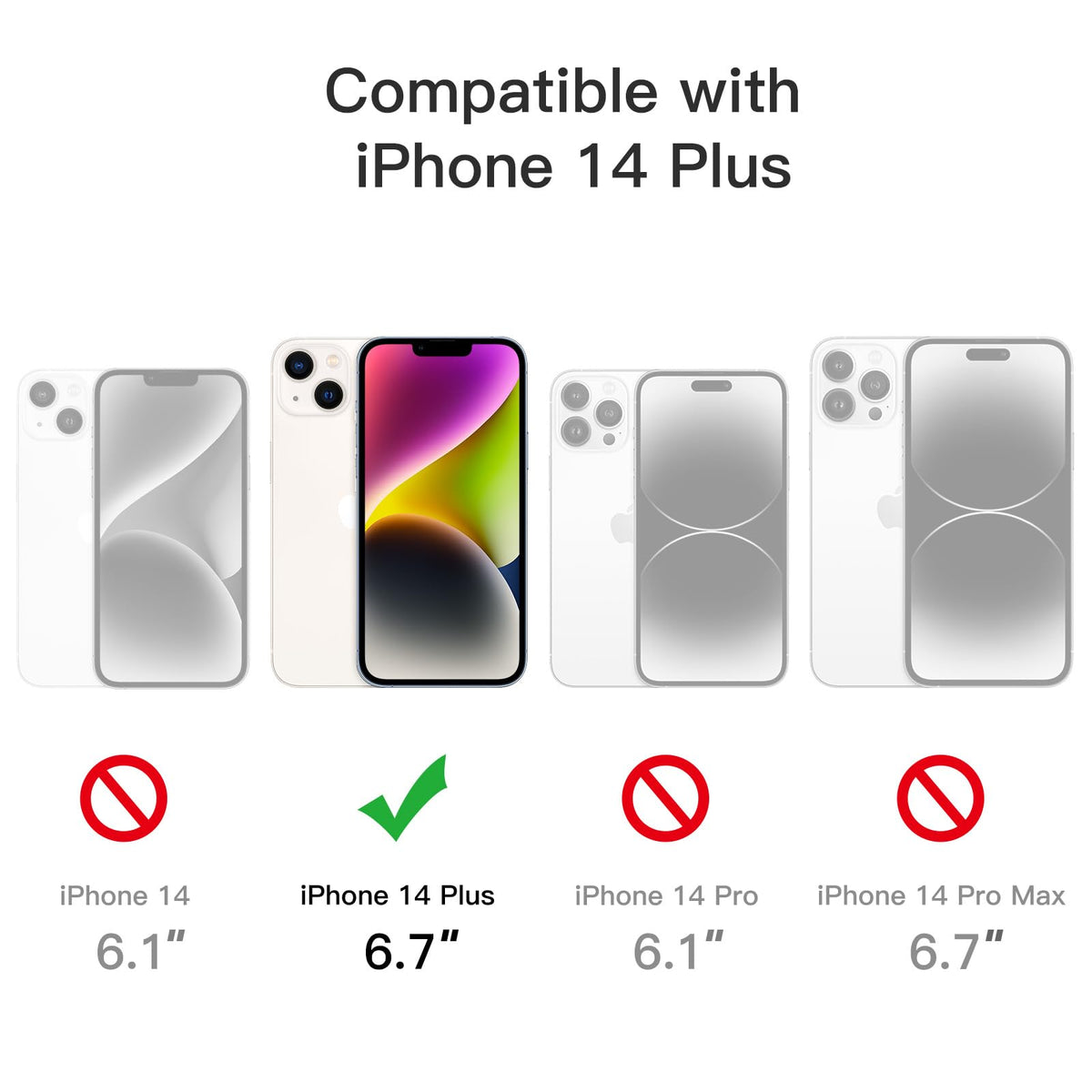 Q: Is the JETech Case compatible with other iPhone models?A: No, the JETech Case is specifically designed for the iPhone 14 Plus 6.7-Inch and is not compatible with iPhone 14, 14 Pro, or 14 Pro Max models.