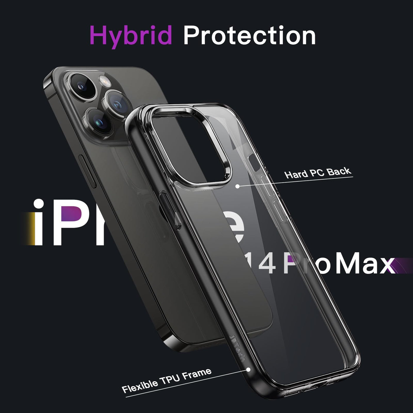 Jetech Case For Iphone 14 Pro Max 6.7 Inch, Non Yellowing Shockproof Phone Bumper Cover, Anti Scratch Clear Back (Black)