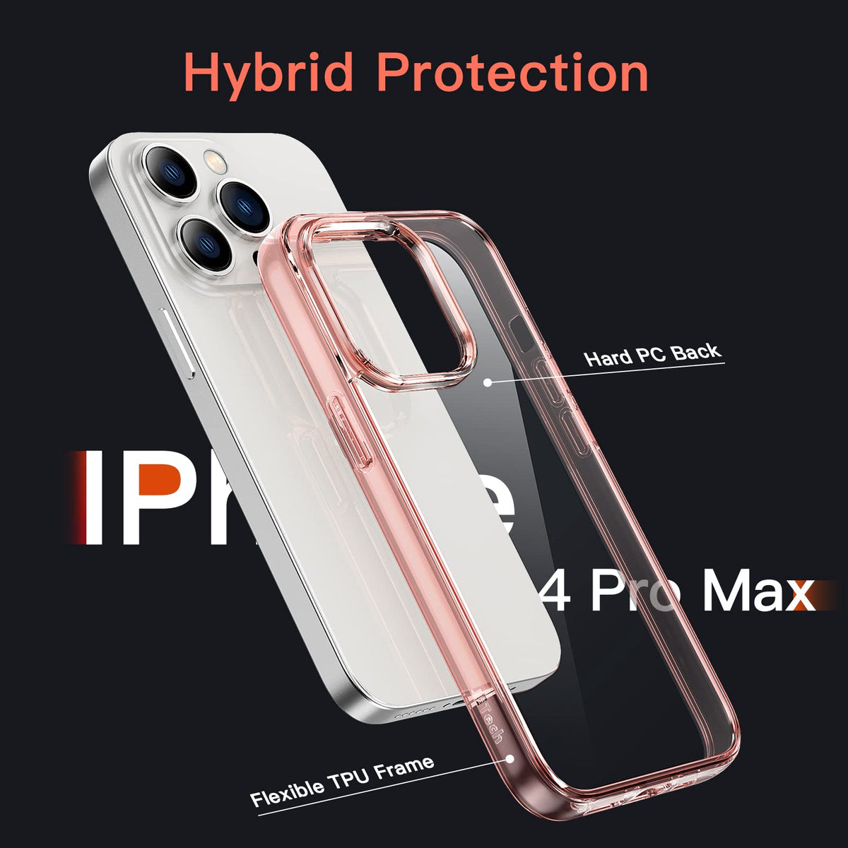 Jetech Case For Iphone 14 Pro Max 6.7 Inch, Non Yellowing Shockproof Phone Bumper Cover, Anti Scratch Clear Back (Rose Gold)